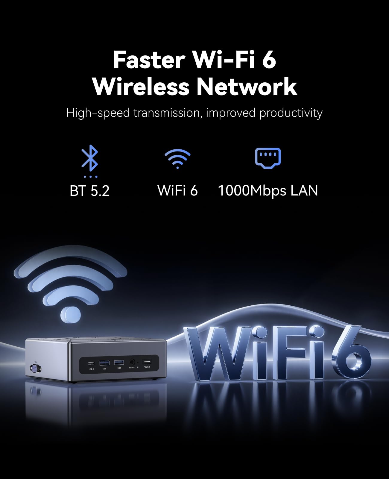 - Moderne Konnektivität: Neuestes WiFi 6 für eine stabile und schnelle drahtlose Verbindung sowie Bluetooth 5.2 für diverses Zubehör.
