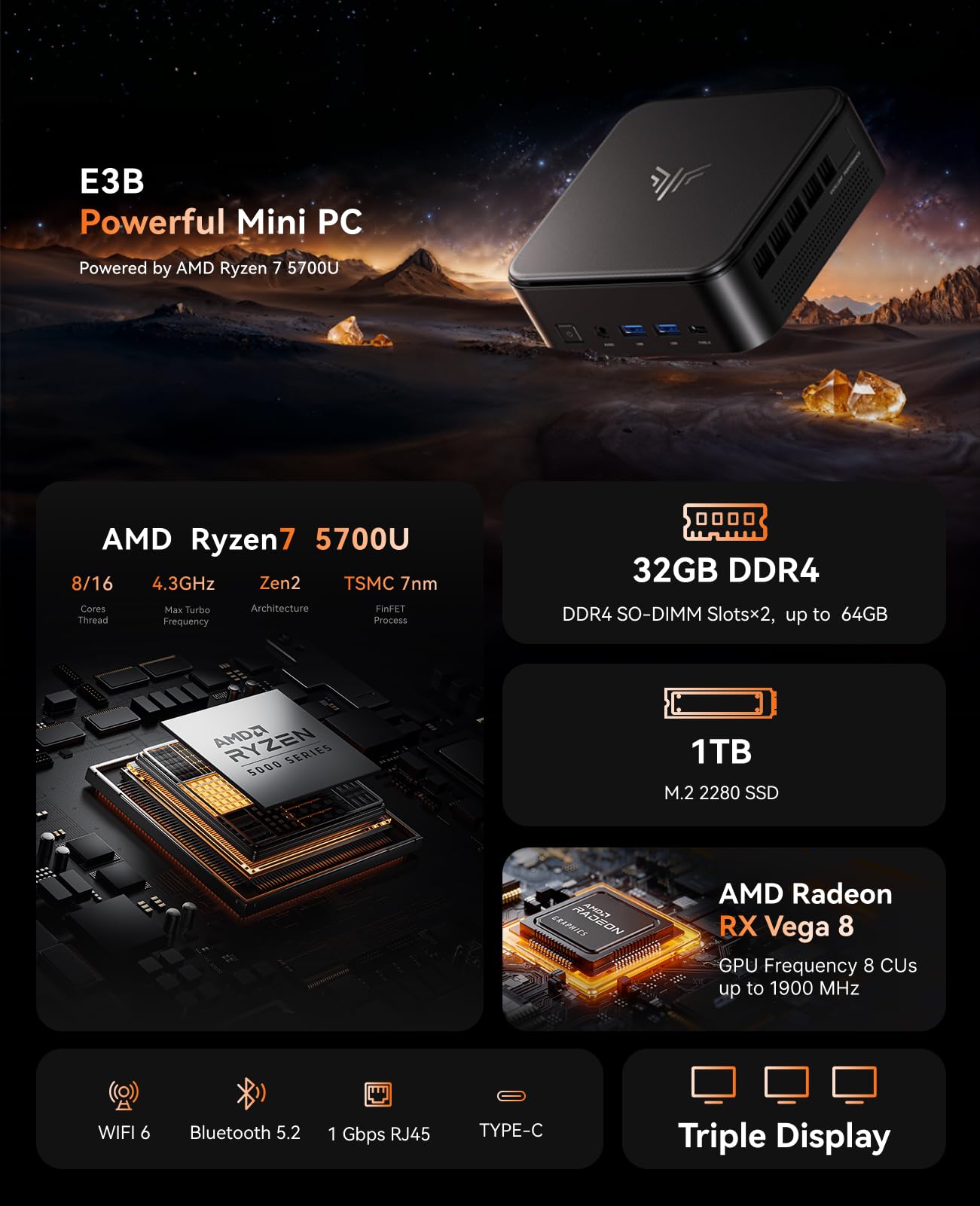 Der NiPoGi E3B Mini PC ist die perfekte, leistungsstarke Lösung für alle, die maximale Performance auf kleinstem Raum suchen.