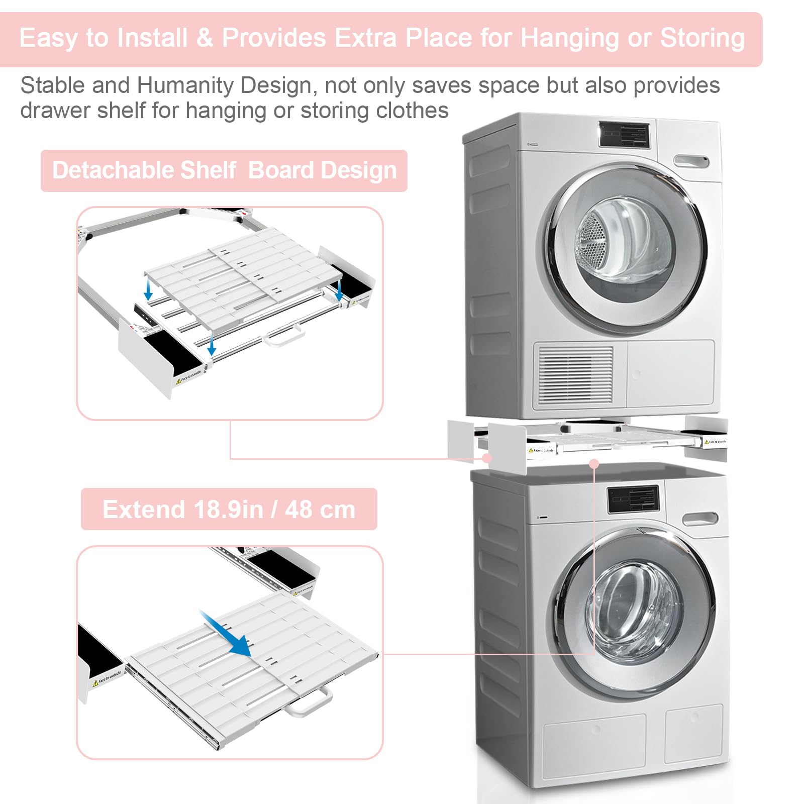 - Universelle Passform: Der Rahmen ist in der Tiefe von 53 bis 68 cm verstellbar und eignet sich somit für fast alle gängigen Waschmaschinen und Trockner.