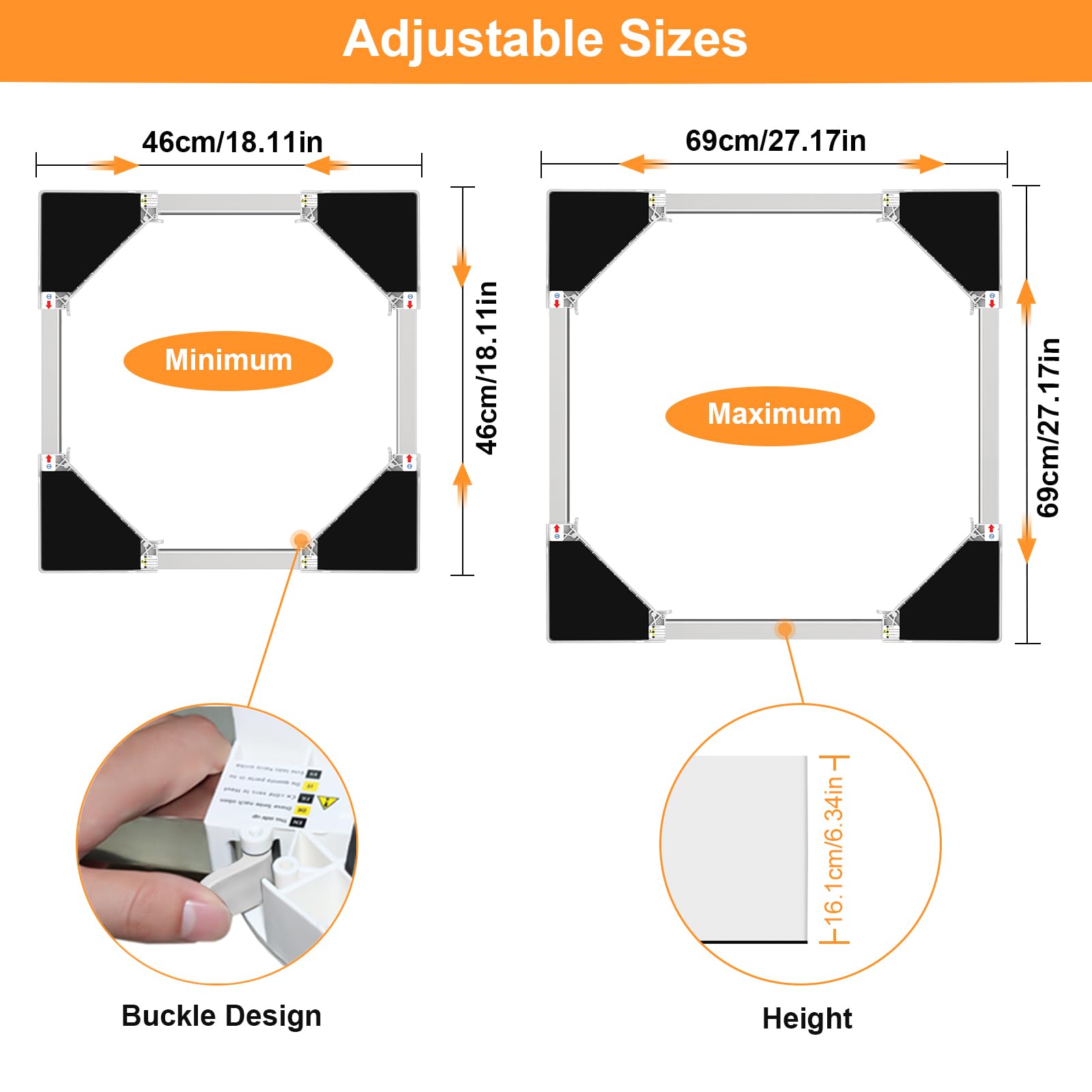 Die Erhöhung um 16,1 cm schützt Ihre Geräte wirksam vor Bodenfeuchtigkeit und potenziellen Wasserschäden. Zudem erleichtert sie die Reinigung unter dem Gerät erheblich – ideal für den Einsatz von Saugrobotern. Der neu geschaffene Platz kann auch als Stauraum genutzt werden.