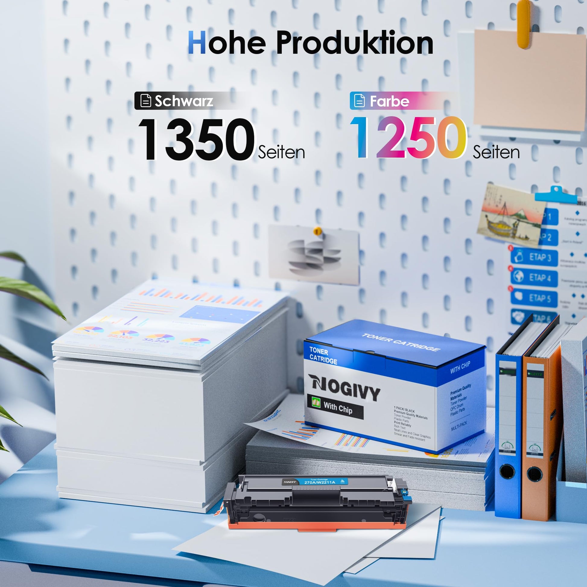 Profitieren Sie von einer herausragenden Druckqualität zu einem Bruchteil der Kosten von Originalprodukten. Die NOGIVY Tonerkartuschen liefern gestochen scharfe Texte und lebendige Farben, die sich ideal für Berichte, Präsentationen und Marketingmaterialien eignen.