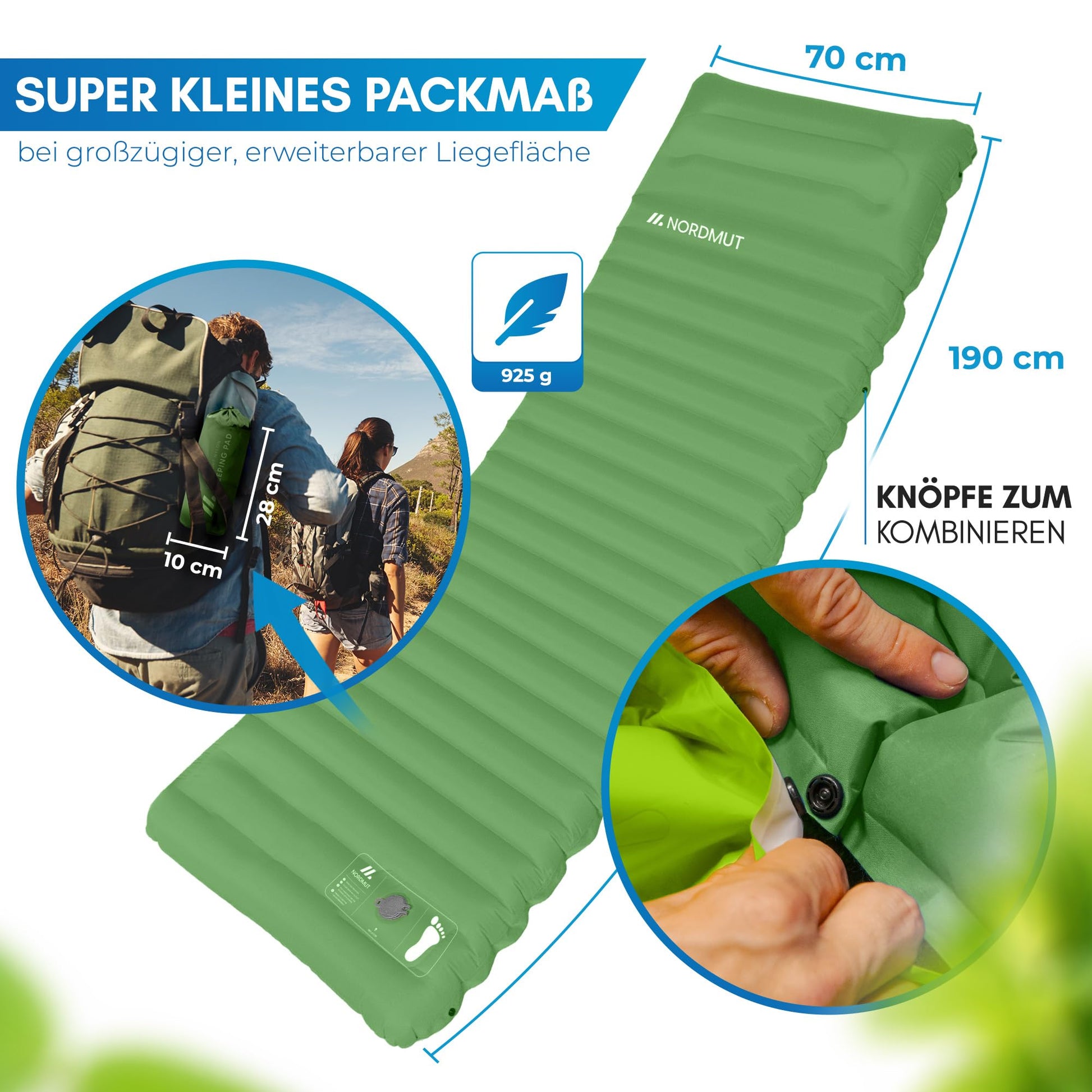 NORDMUT Isomatte Selbstaufblasend 10cm Camping - Grün