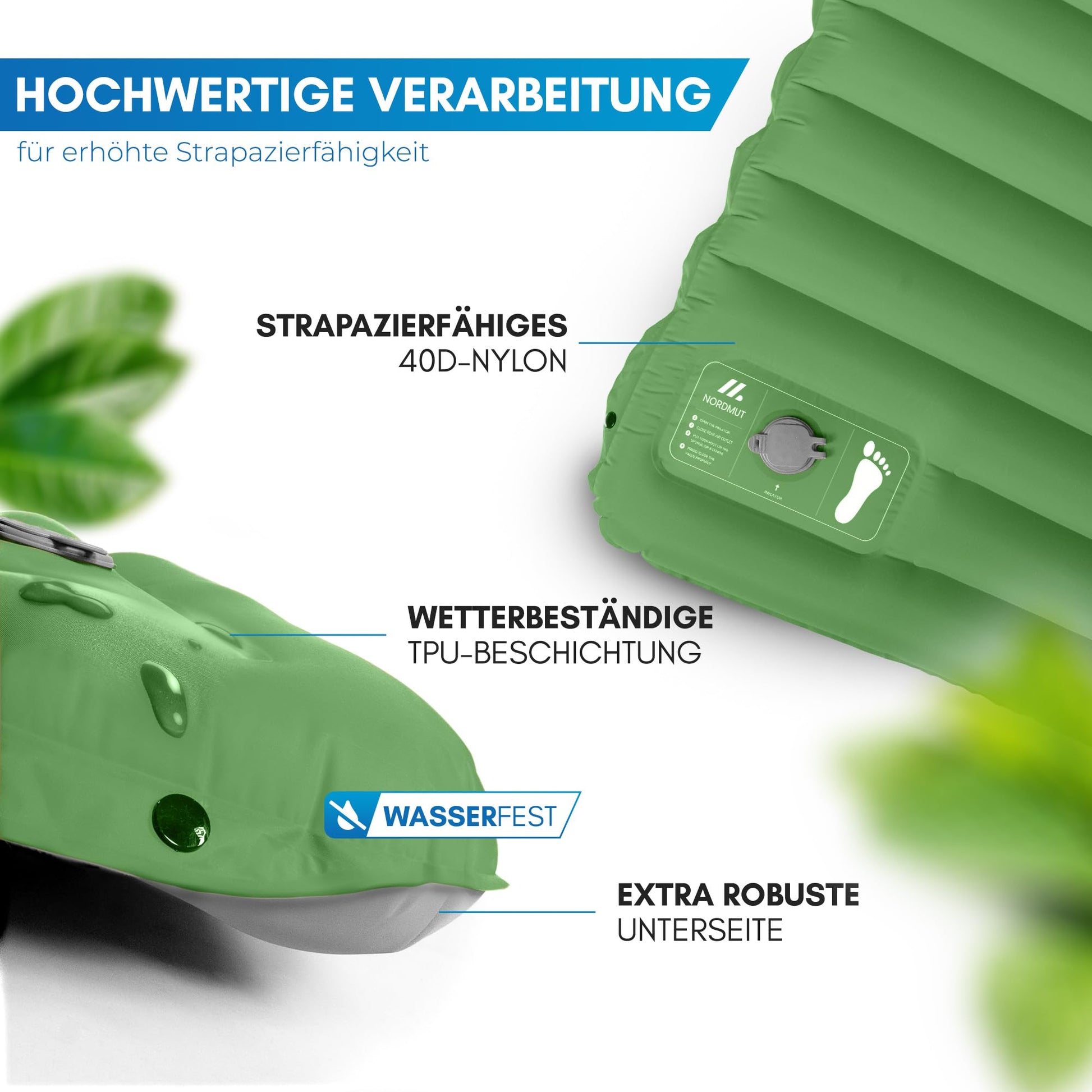 Langlebiger Begleiter: Das reissfeste Material und die wetterbeständige Beschichtung machen diese Camping-Matratze zu einer langlebigen Investition. Sie hält den Strapazen von Outdoor-Abenteuern zuverlässig stand.