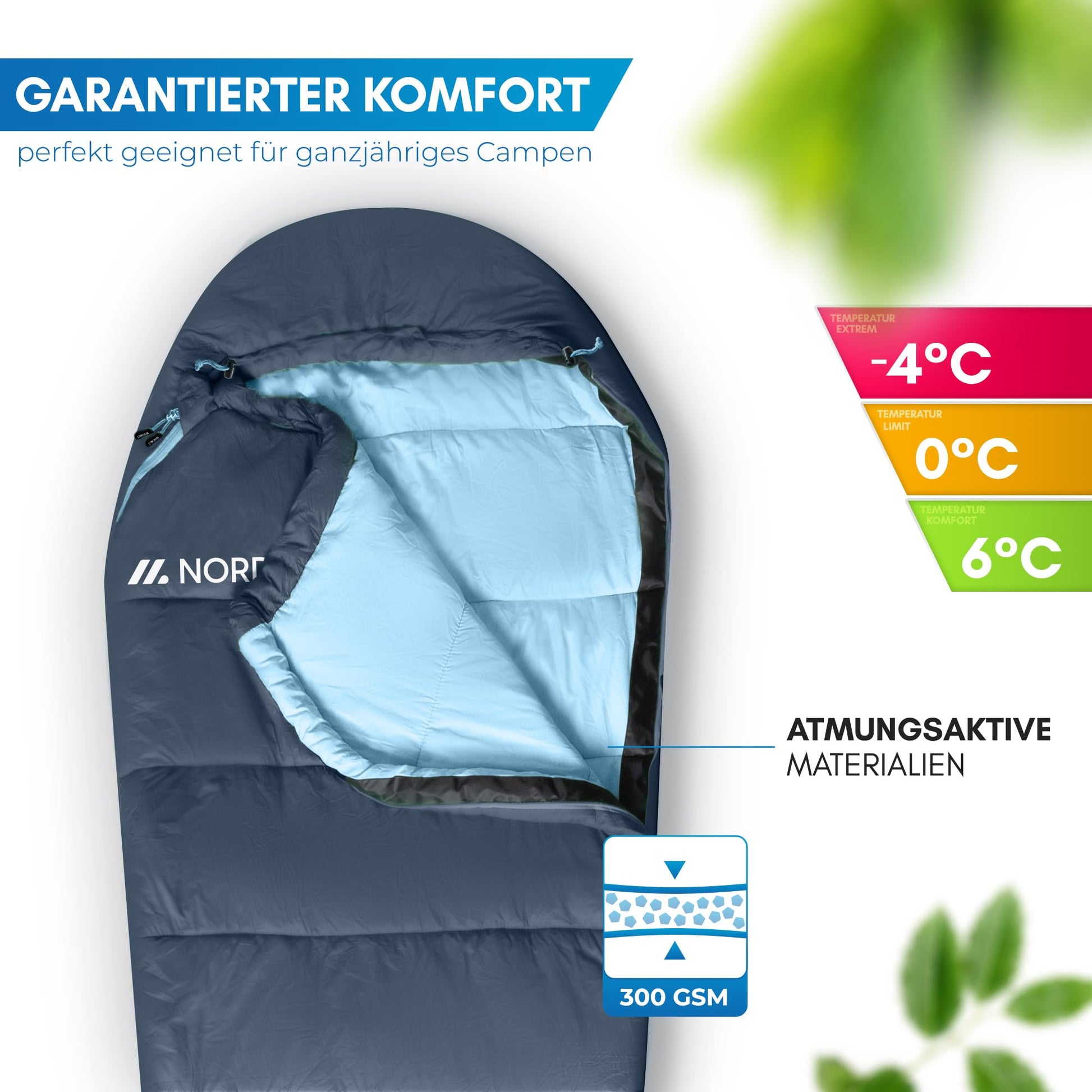 NORDMUT® Ultraleicht Mumienschlafsack - 3-Jahreszeiten 250 GSM