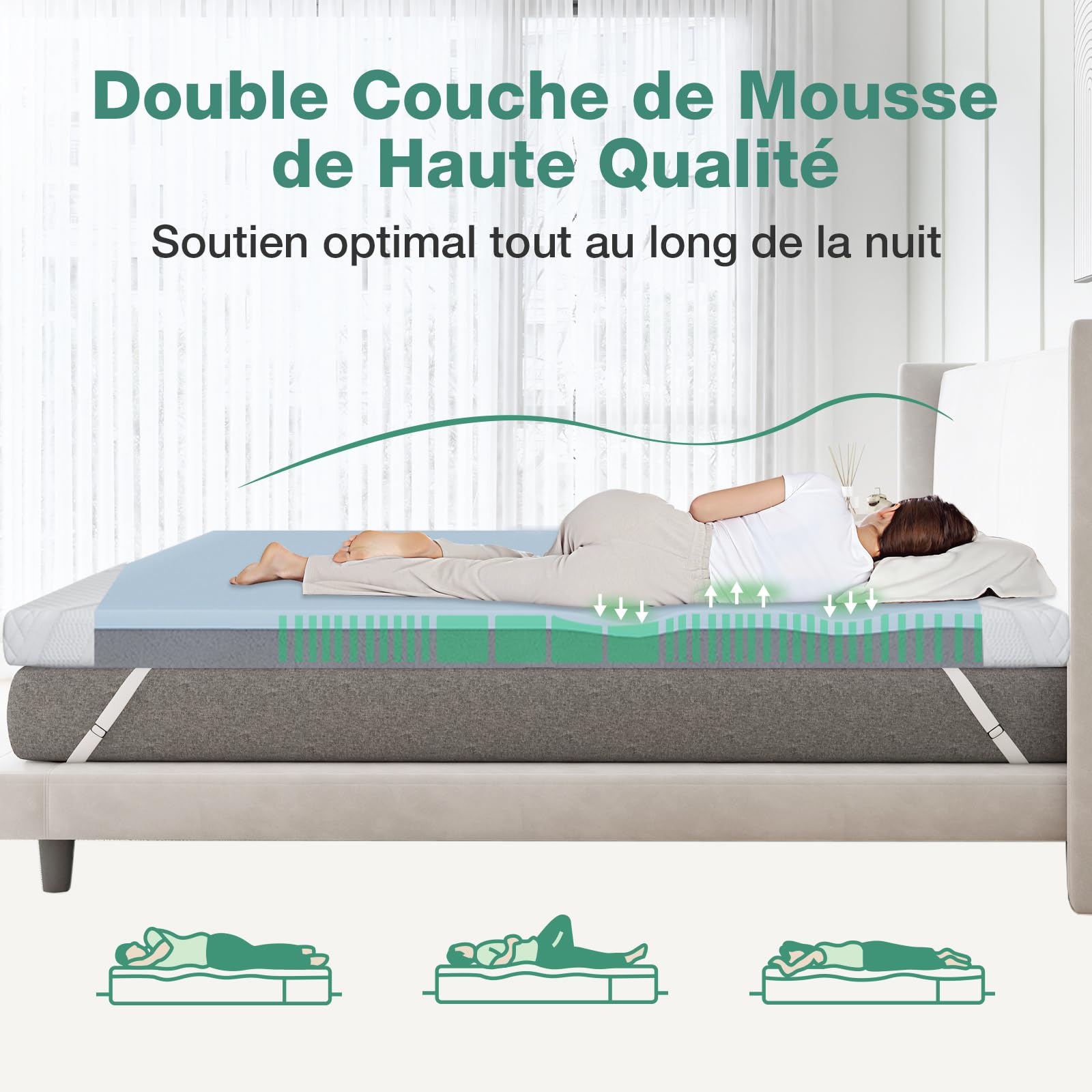 - Zwei Härtegrade in einem: Dieser 2-in-1-Topper verfügt über zwei unterschiedliche Seiten. Die obere Schicht aus Gelschaum (H2) vermittelt ein weiches, wolkenähnliches Liegegefühl, während die untere Schicht aus Komfortschaum (H3) eine festere Unterstützung bietet.
