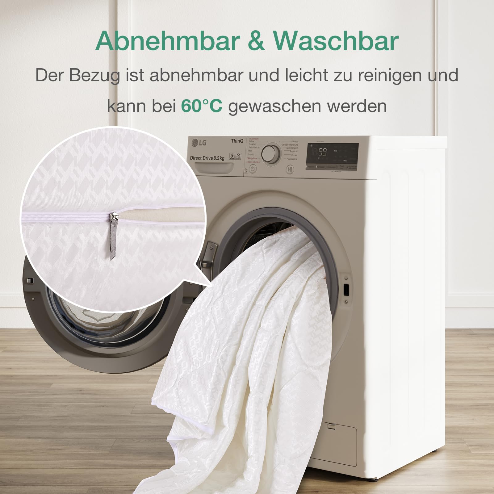 - Atmungsaktiver Bezug: Der robuste und weiche Bezug ist abnehmbar, bei 60 °C waschbar und unterstützt durch seine hohe Luftdurchlässigkeit ein trockenes Schlafklima.