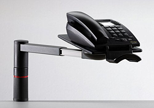 Durch den leicht gleitenden Teleskoparm und die neigbare Tragplatte können Sie Ihr Telefon exakt auf Ihre Bedürfnisse ausrichten. Dies erhöht den Bedienkomfort markant, fördert eine bessere Körperhaltung und trägt zu einem ergonomisch optimierten Arbeitsbereich bei.