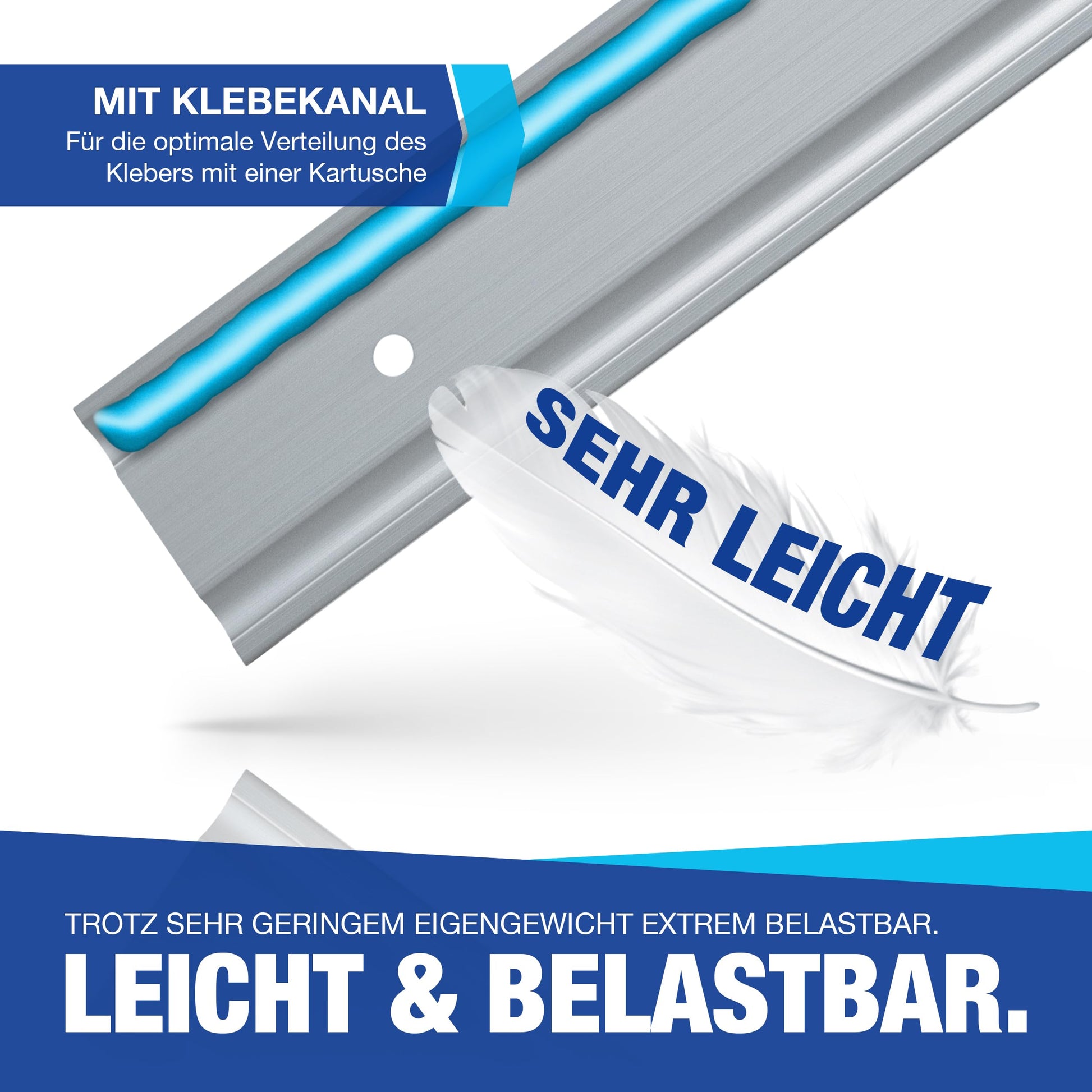 Die Montage gestaltet sich dank der vorgebohrten Löcher und des praktischen Klebekanals auf der Unterseite besonders einfach und sauber. Sie können die Schienen schnell und sicher befestigen, egal ob geschraubt oder geklebt.