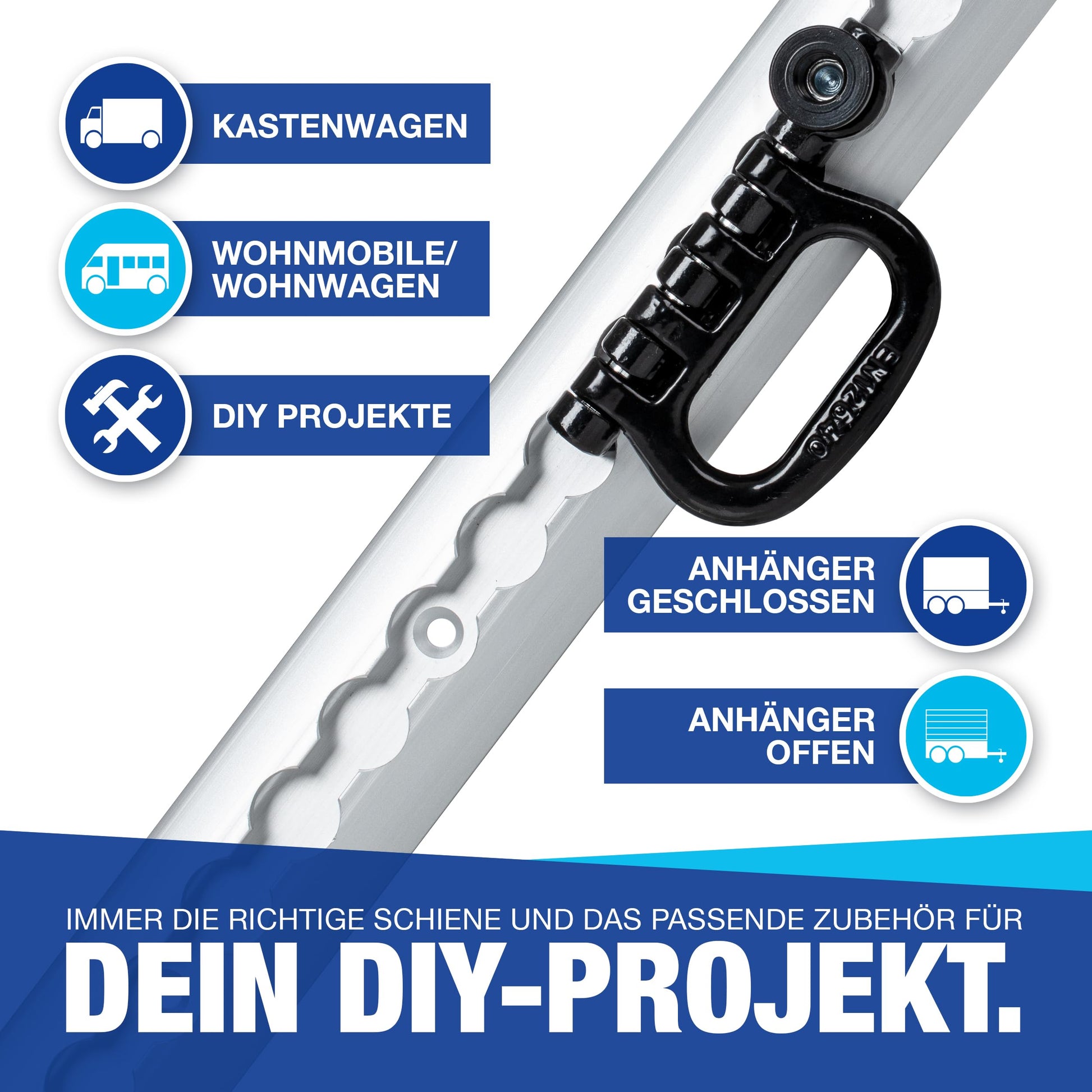 Dieses umfassende Set bietet Ihnen alles, was Sie für eine professionelle und sichere Ladungssicherung benötigen. Die hochwertigen Airlineschienen aus Aluminium sind robust, langlebig und flexibel einsetzbar in Fahrzeugen, Anhängern oder Werkstätten.