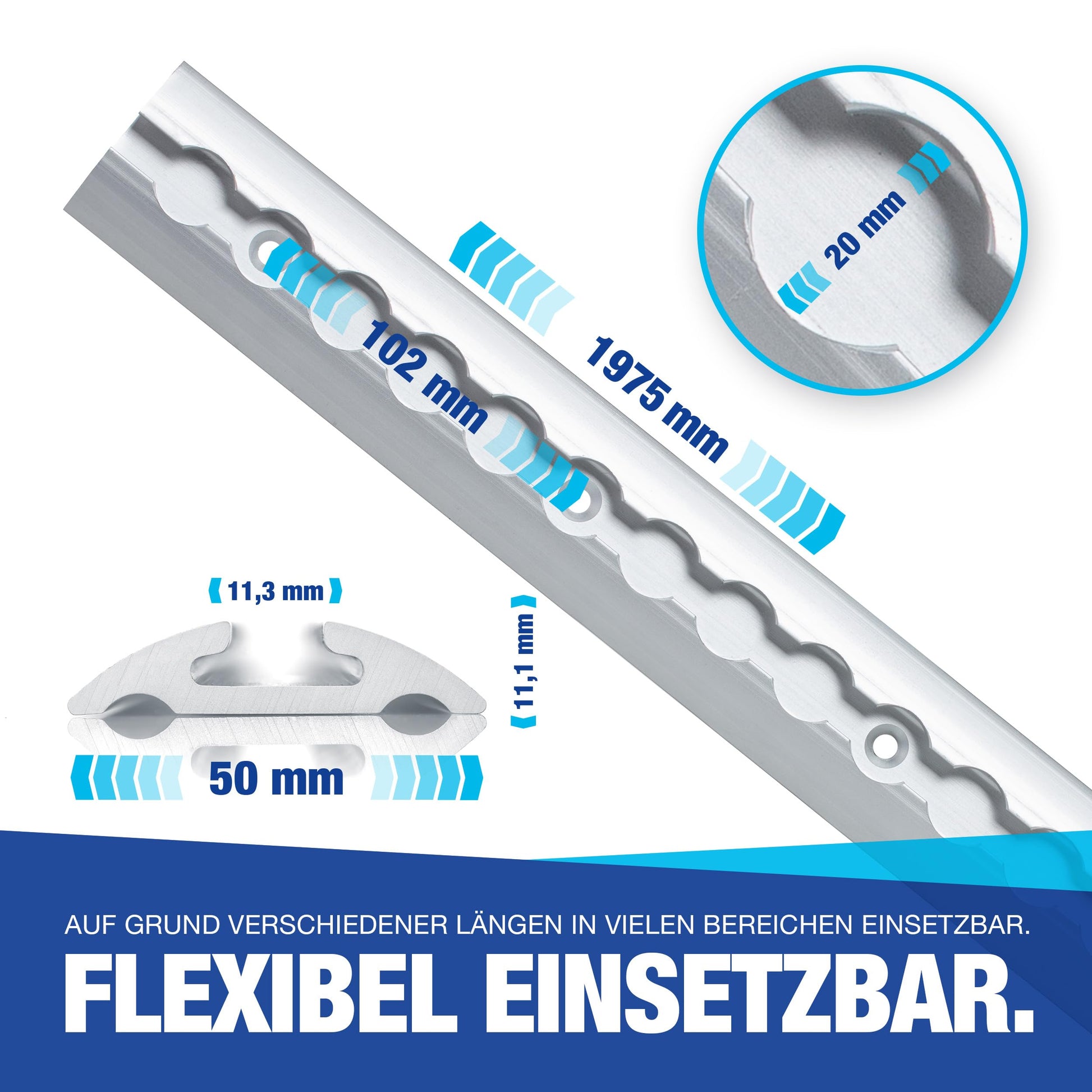 - Hochwertiges Material: Gefertigt aus eloxiertem Aluminium, bieten die Schienen eine widerstandsfähige und korrosionsbeständige Oberfläche für den langfristigen Einsatz.