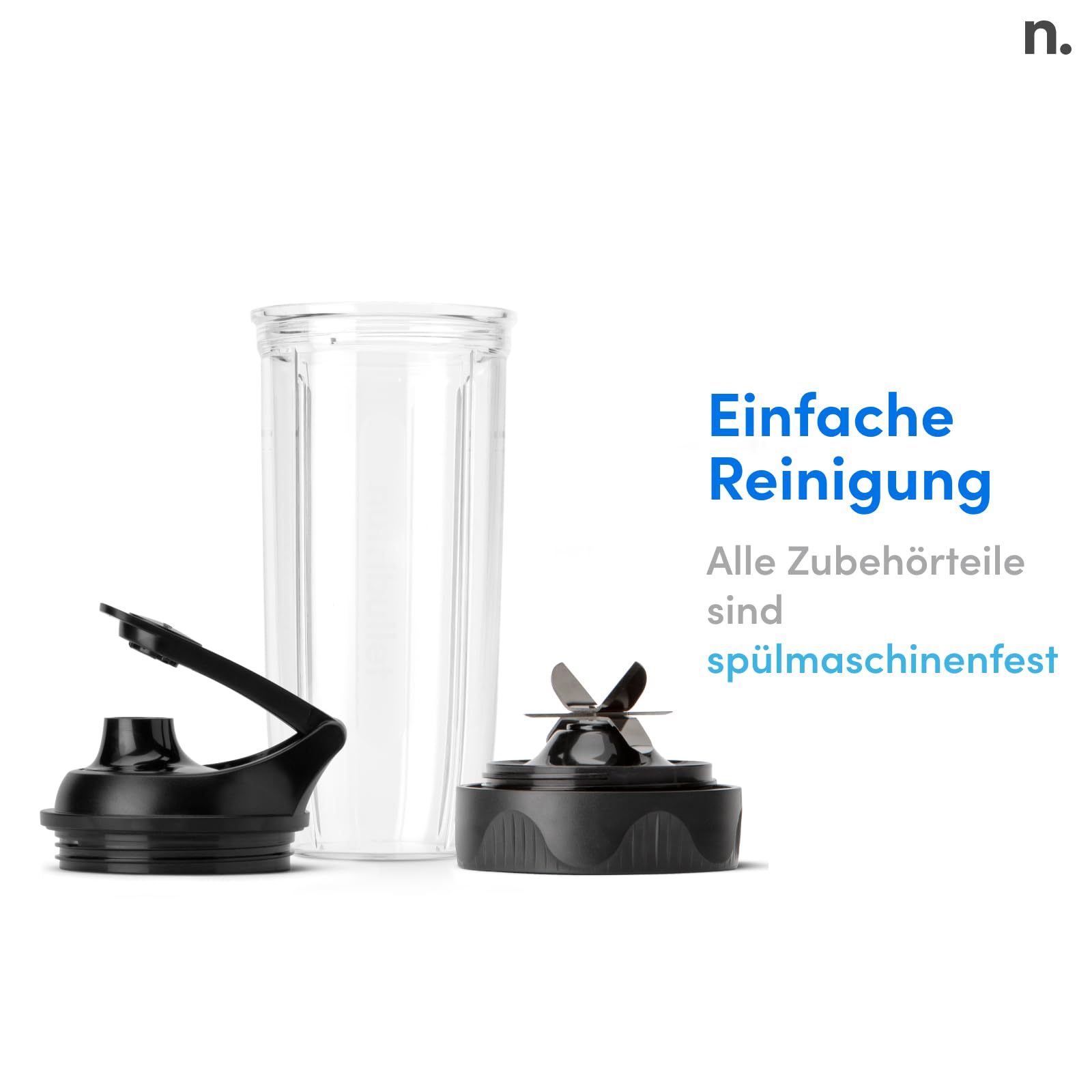 - Einfache Reinigung: Der Becher ist spülmaschinengeeignet, die Klingen lassen sich mühelos mit Wasser und Seife abspülen.