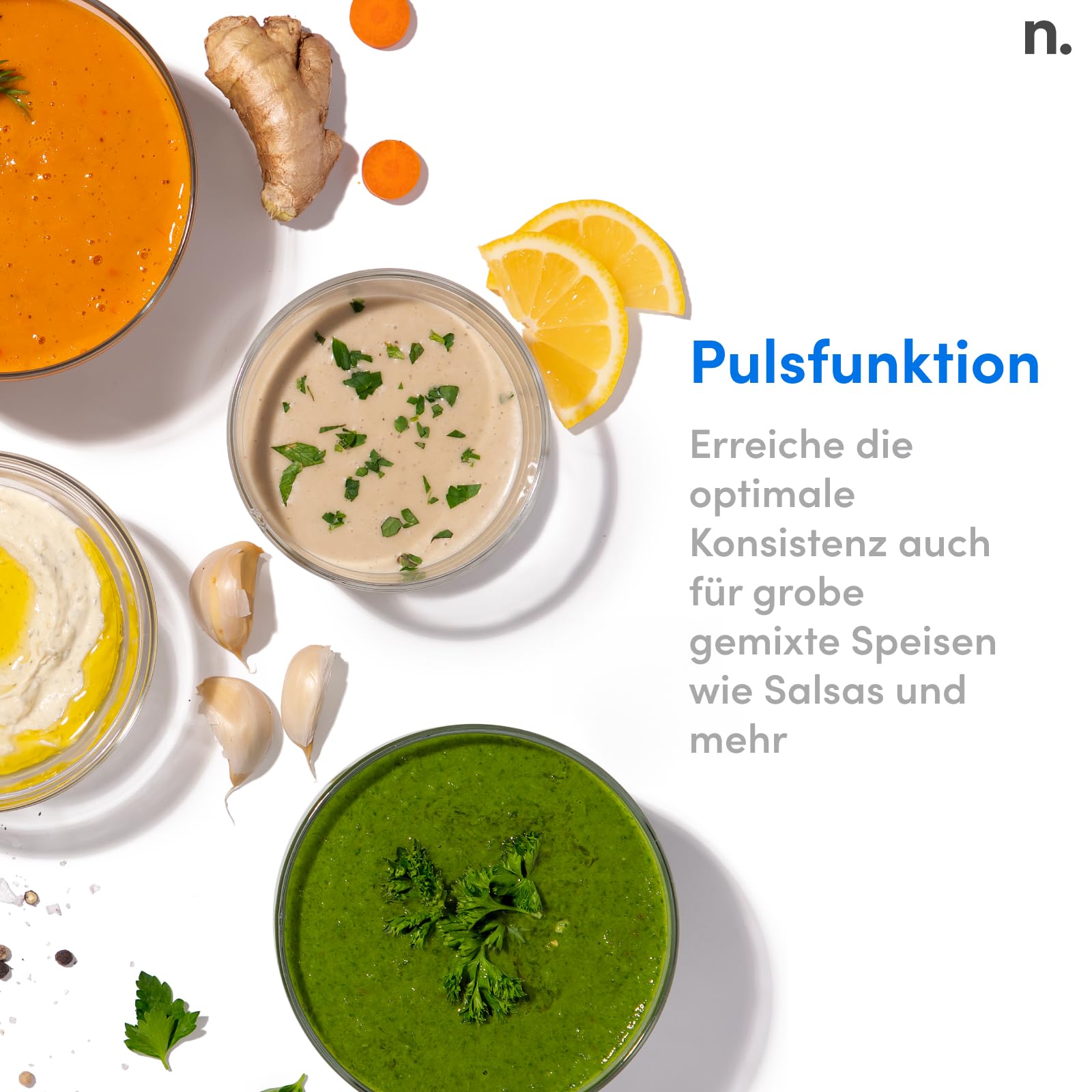 - Leistungsstarker 1000-Watt-Motor: Sorgt für besonders feine und cremige Resultate in kürzester Zeit.