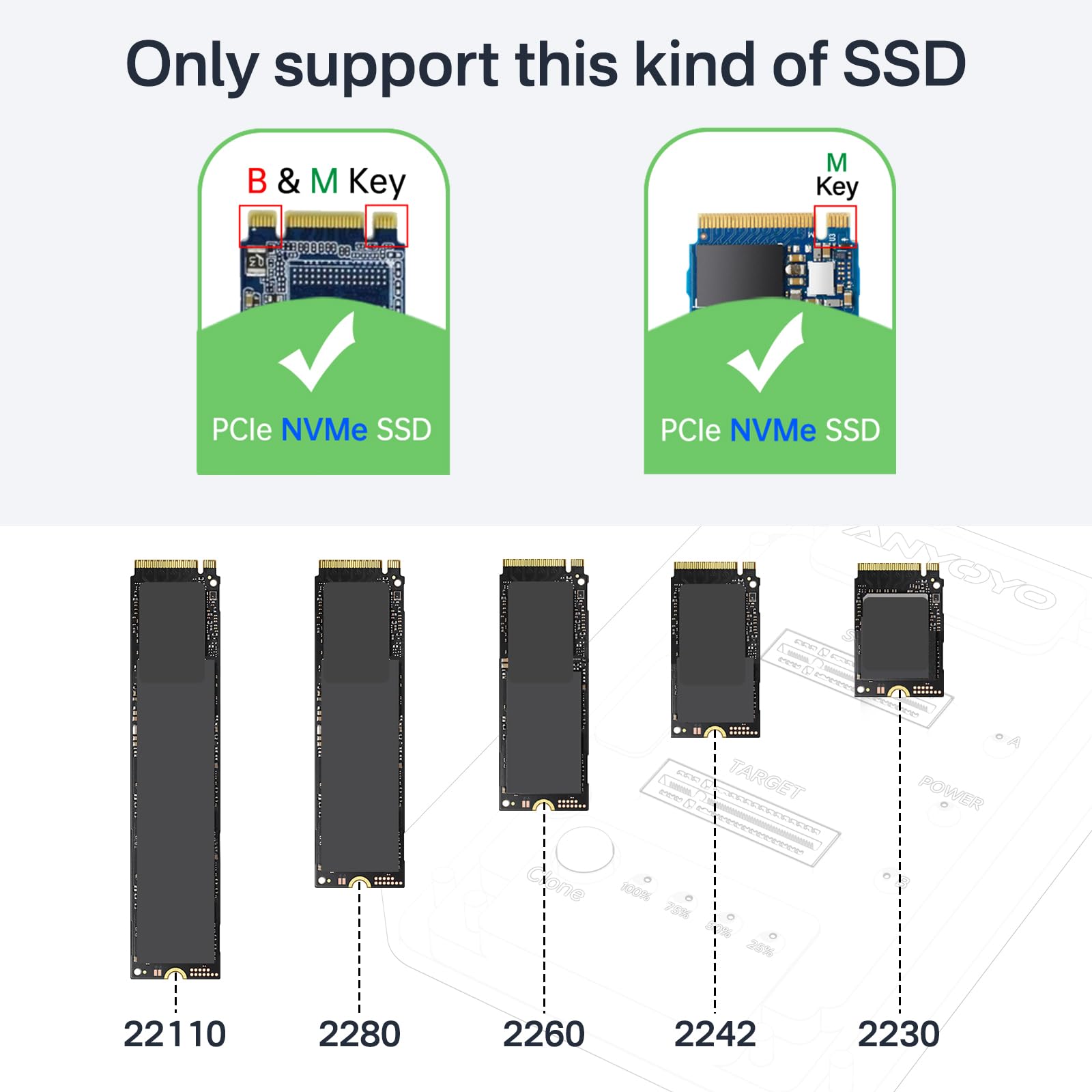 Diese Station ist ausschliesslich für M.2 NVMe SSDs (Formfaktoren 2230, 2242, 2260, 2280) konzipiert. Sie ist nicht mit M.2 SATA SSDs kompatibel. Bitte prüfen Sie vor dem Kauf, ob Ihre SSDs den NVMe-Standard verwenden.