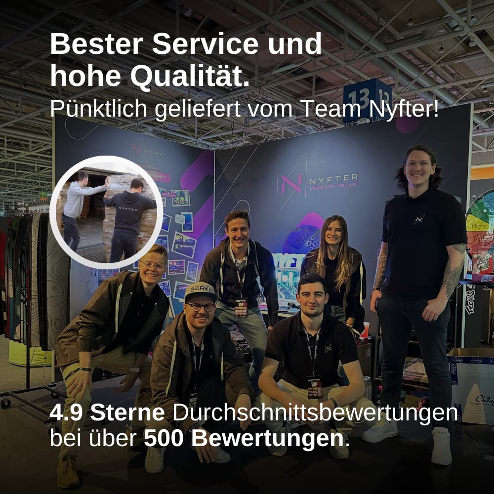 Die herausragende Qualität wird durch hochwertige Materialien und die Nähe zur Community sichergestellt. Indem wir auf das Feedback von Gamern hören, schaffen wir professionelles Equipment, das den höchsten Ansprüchen gerecht wird. Werden Sie Teil der Nyfter-Bewegung und entdecken Sie Ausrüstung, die Ihre Leistung steigert.