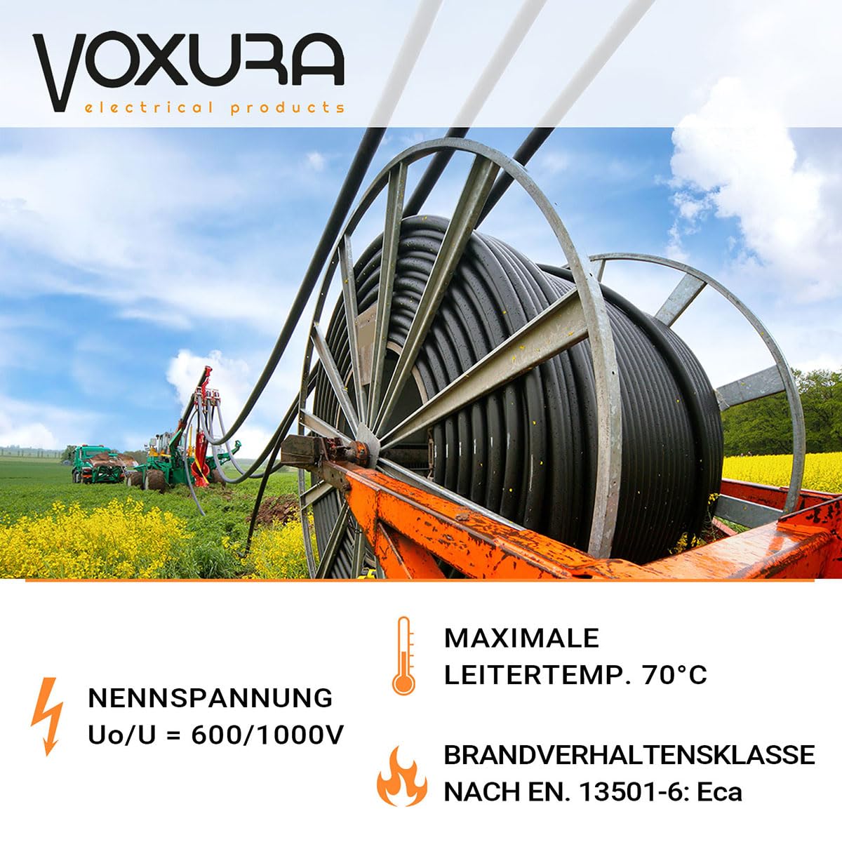 Dieses hochwertige Erdkabel von Voxura garantiert eine sichere und beständige Stromversorgung für Installationen im Aussenbereich und direkt im Erdreich. Es wurde für die feste Verlegung konzipiert und bietet eine zuverlässige Leistung unter anspruchsvollen Bedingungen.