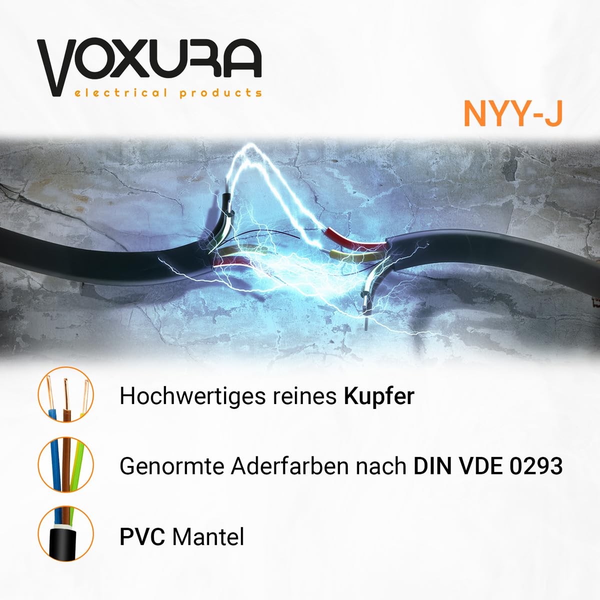 Mit diesem Erdkabel von Voxura treffen Sie die richtige Wahl für eine sichere und professionelle Elektroinstallation im Aussenbereich.