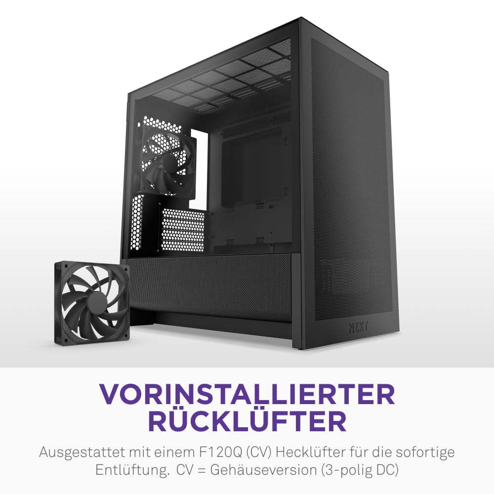 - Vorinstallierter Lüfter: 1x F120Q (Case Version) an der Rückseite
