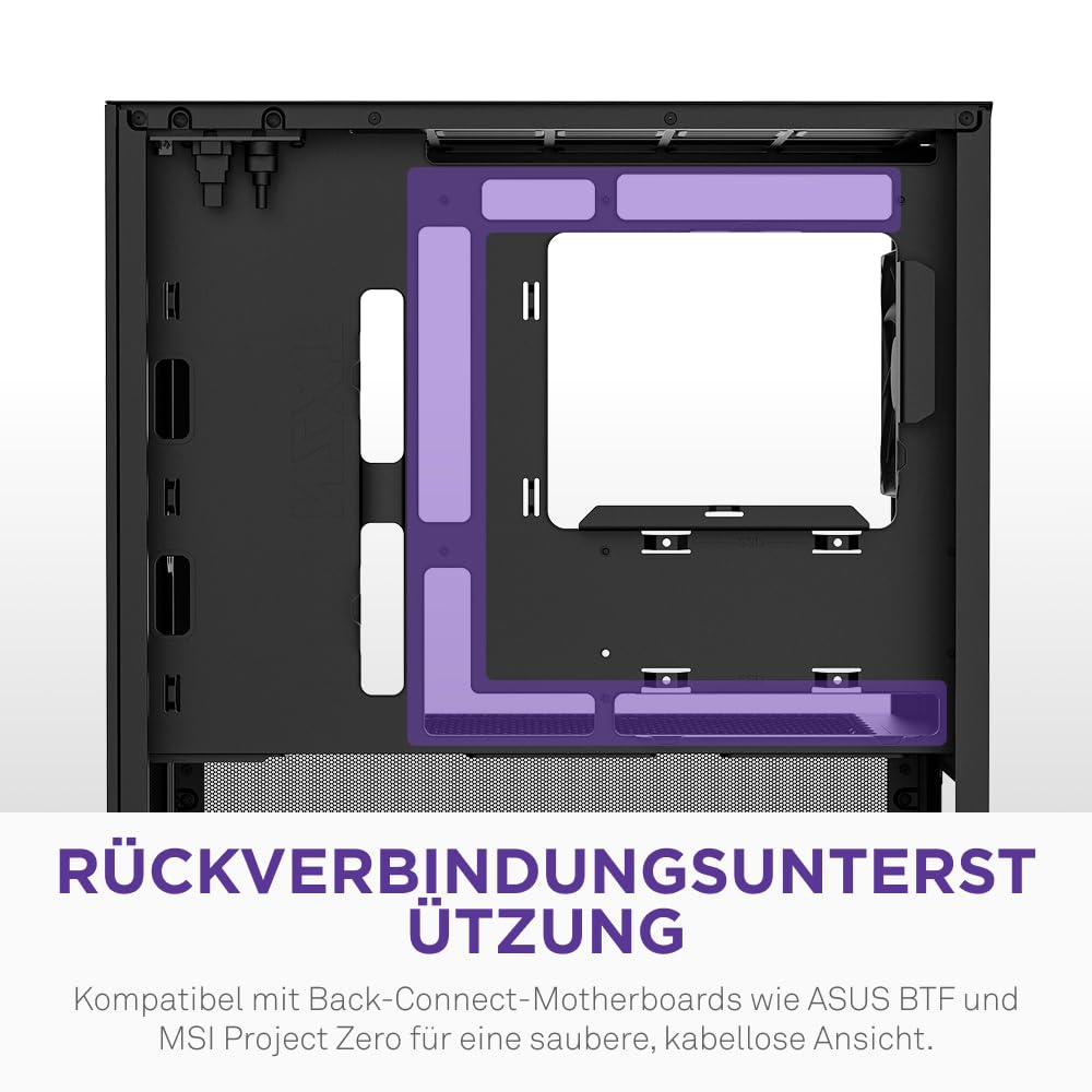 Dank der durchdachten Konstruktion mit perforierten Paneelen und einer belüfteten Netzteilabdeckung wird ein kontinuierlicher Luftstrom sichergestellt. Ihre Hochleistungskomponenten wie Prozessor und Grafikkarte bleiben selbst bei intensiver Nutzung optimal gekühlt, was zu einer stabilen Performance und einer längeren Lebensdauer Ihrer Hardware führt.