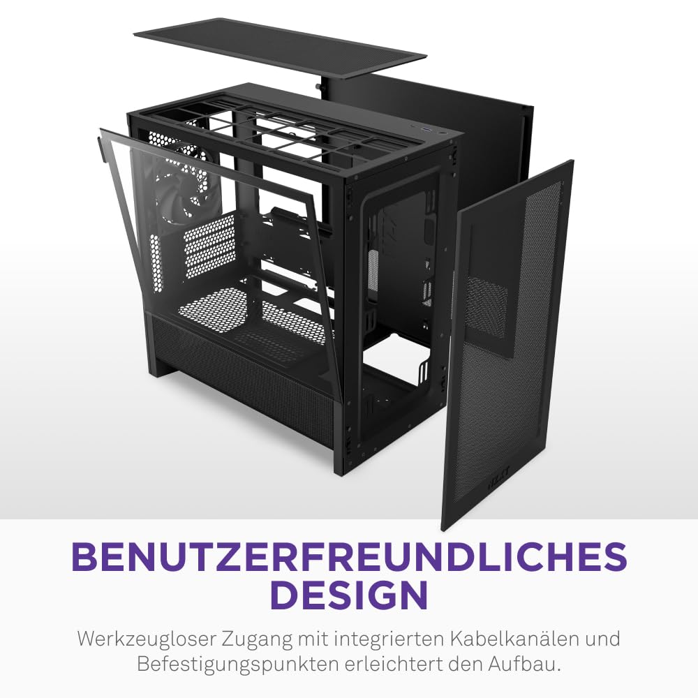 - Optimierter Airflow: Front- und Deckelpaneele aus ultrafeinem Stahlgewebe sorgen für maximalen Luftdurchsatz und dienen zugleich als effektiver Staubfilter.