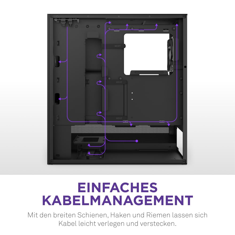 - Durchdachtes Kabelmanagement: Breite Kanäle, Haken und Klettbänder erleichtern das saubere Verlegen und Verstecken der Kabel für eine aufgeräumte Optik und besseren Luftfluss.