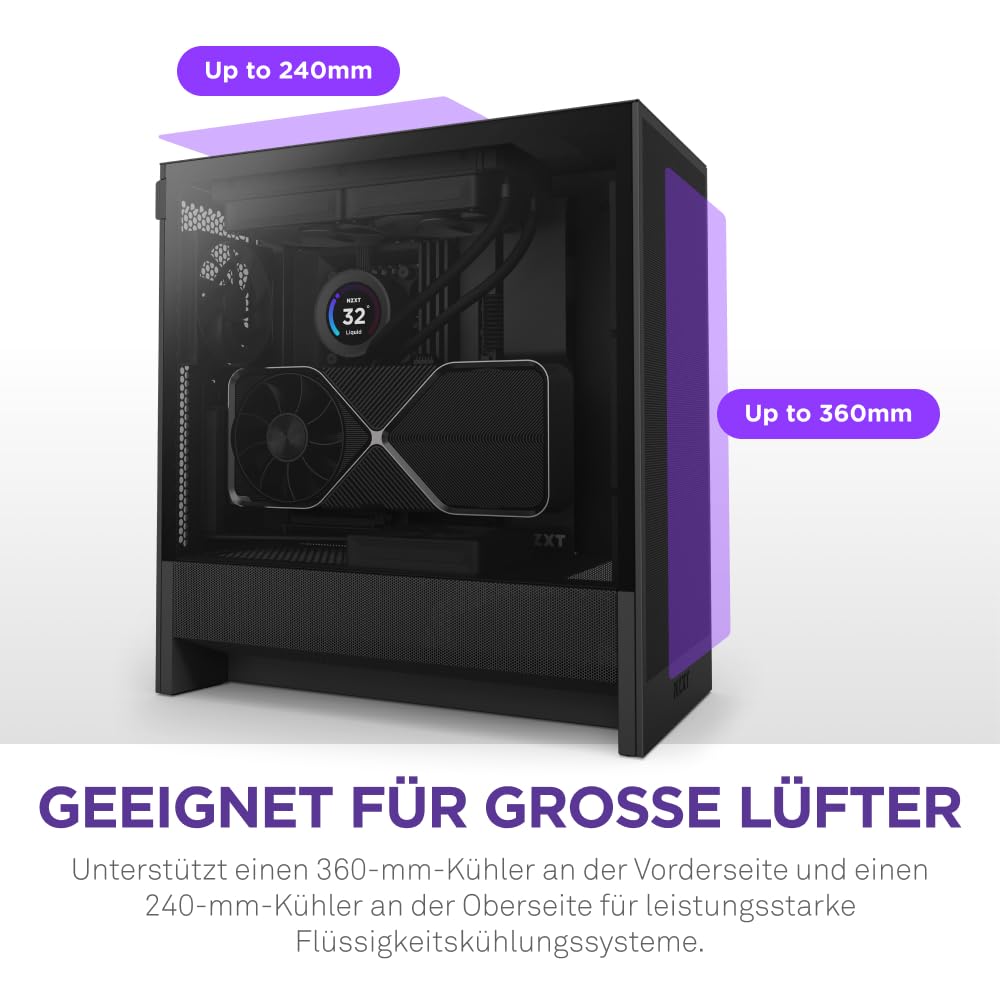 Das H5 Flow unterstützt Grafikkarten mit einer Länge von bis zu 365 mm und CPU-Luftkühler mit einer Höhe von bis zu 165 mm. Damit ist es mit den meisten gängigen High-End-Komponenten auf dem Markt kompatibel.