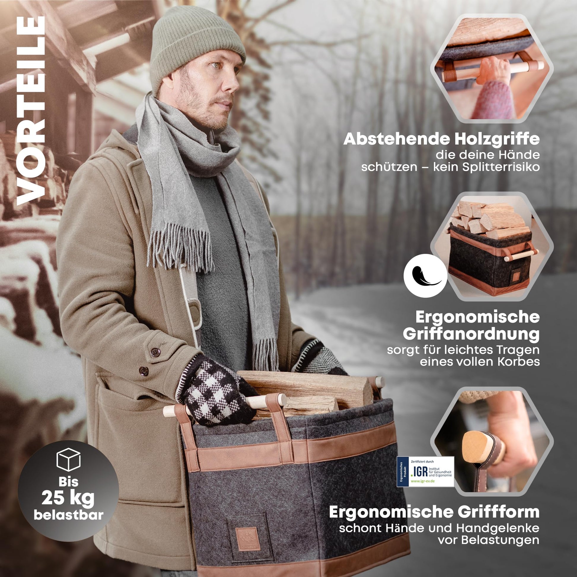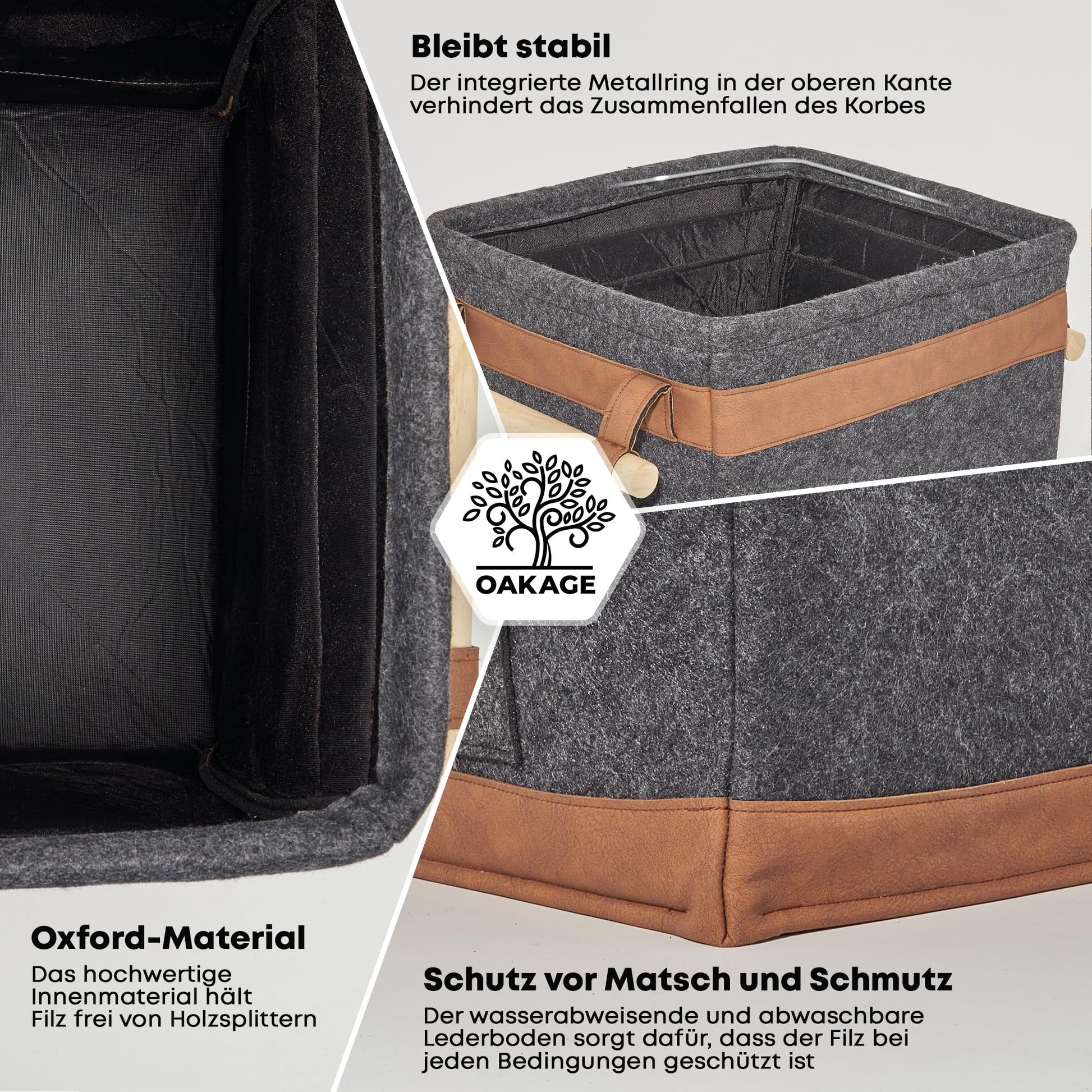 OAKAGE Holzkorb für Kaminholz Filz – Gross Dunkelgrau
