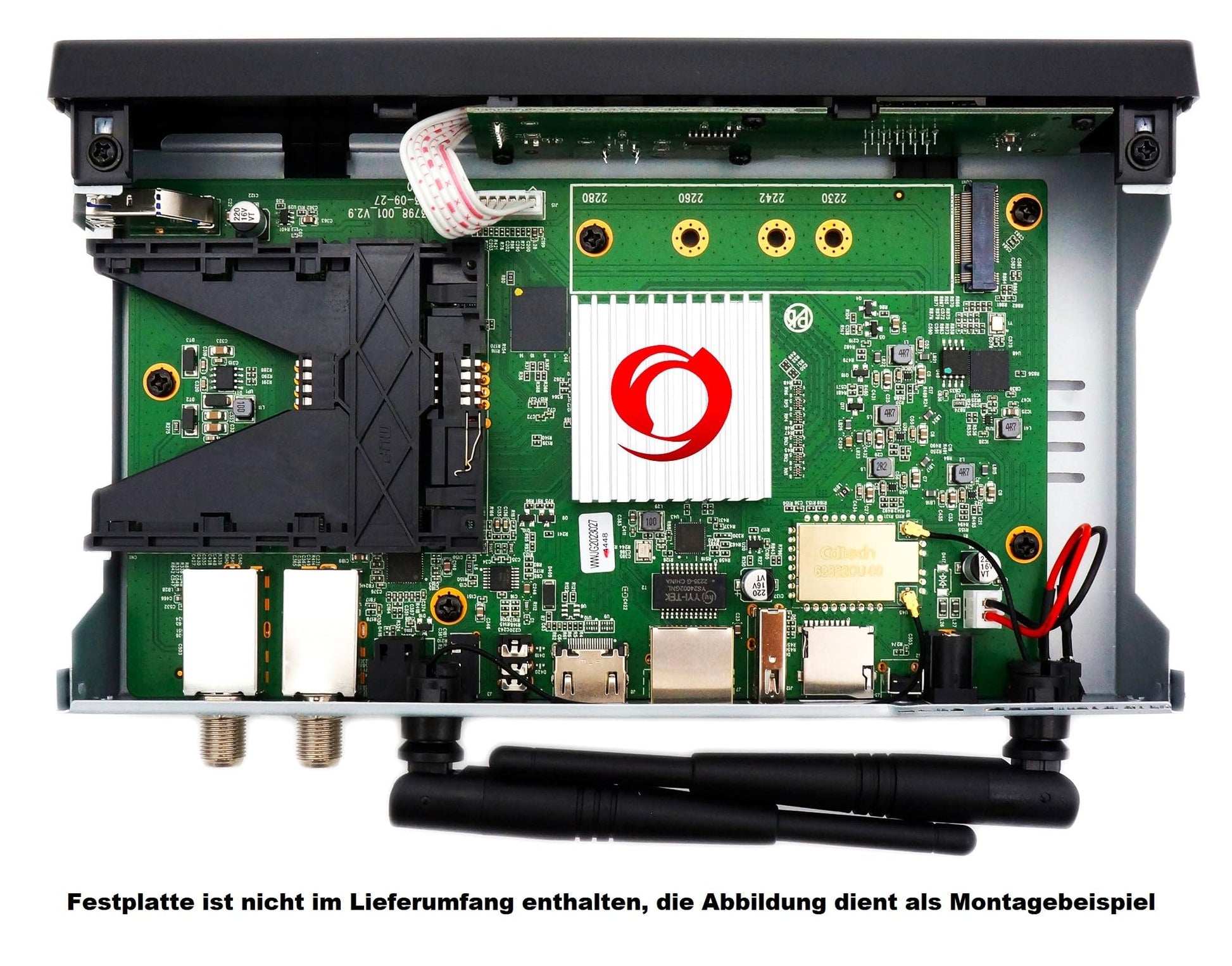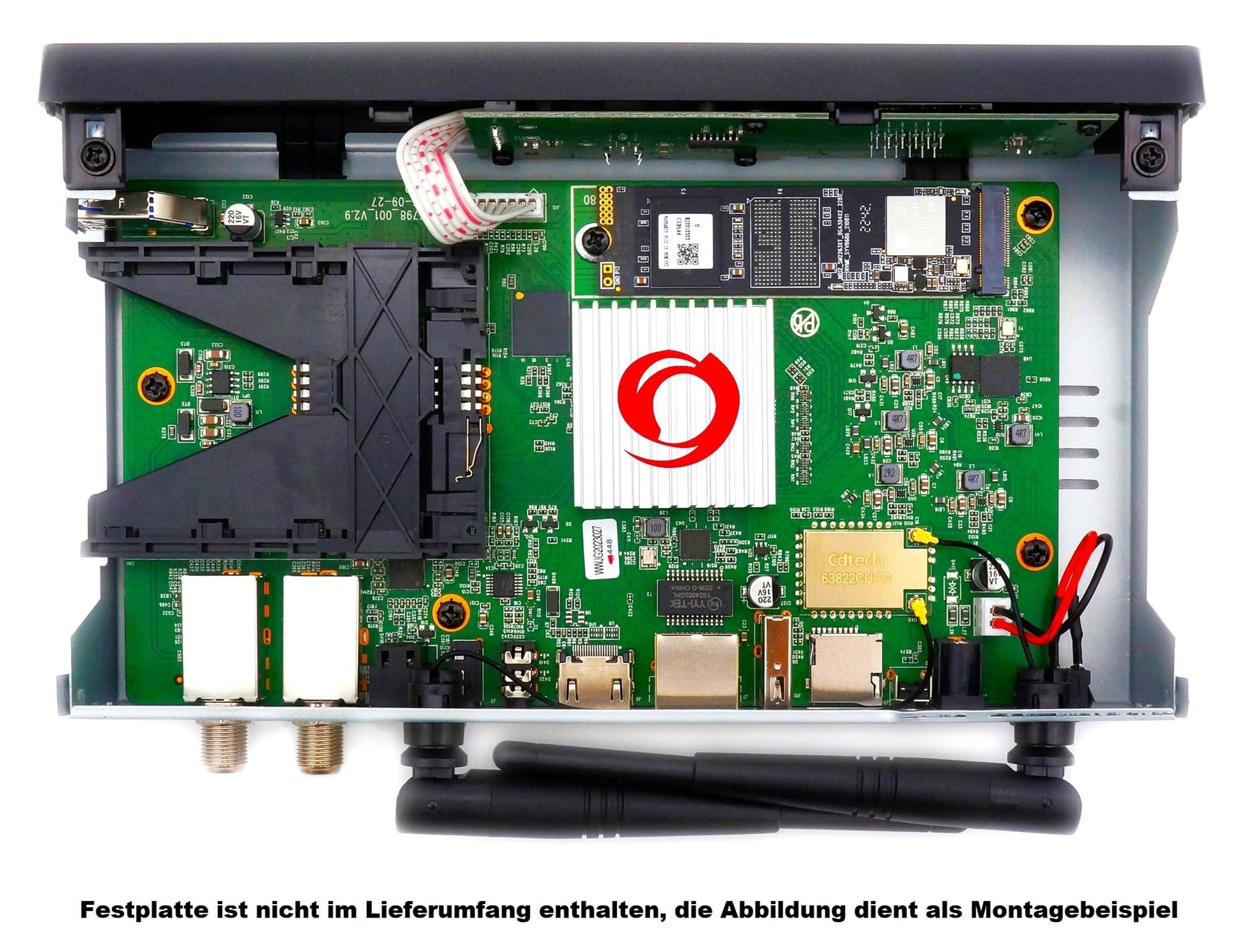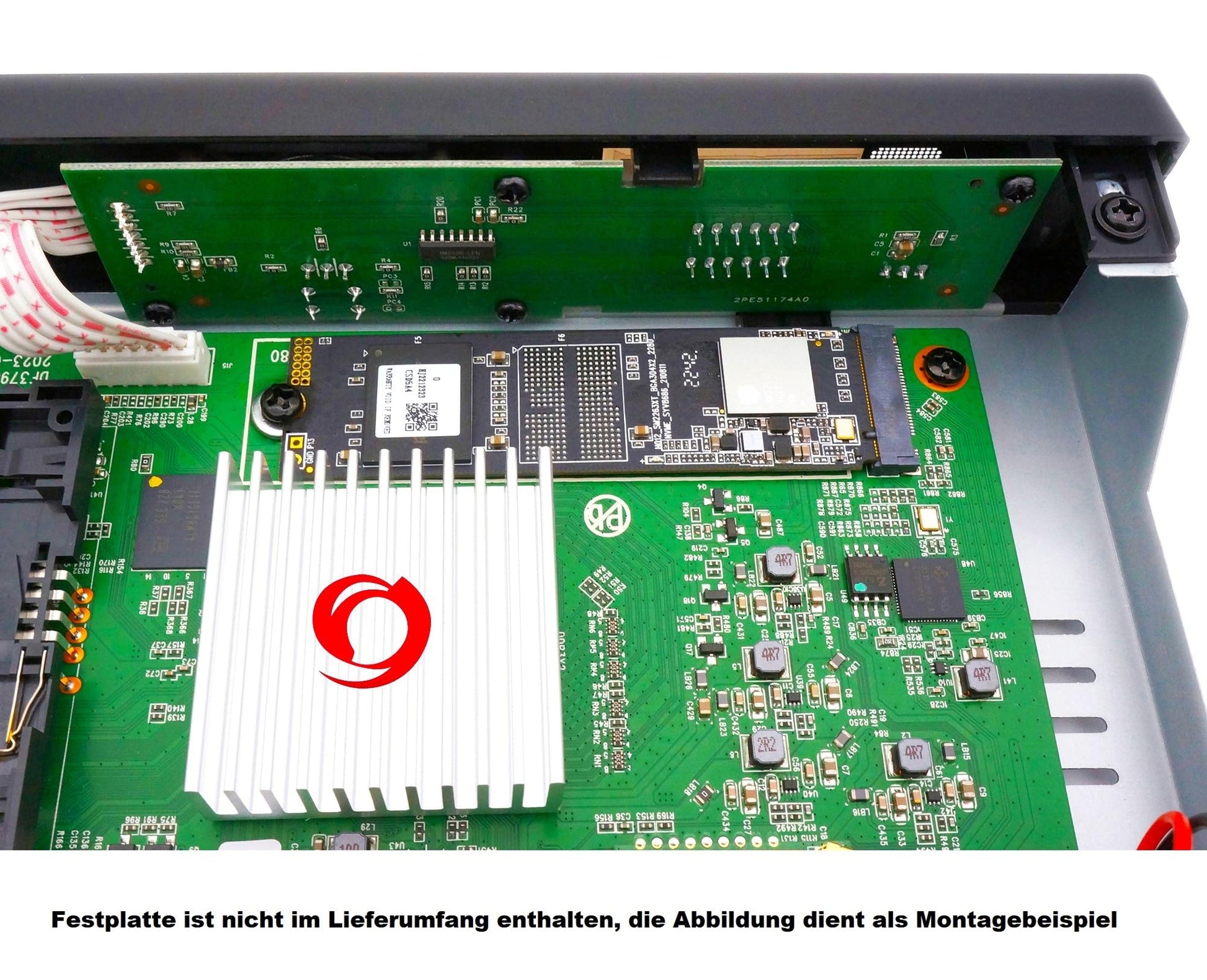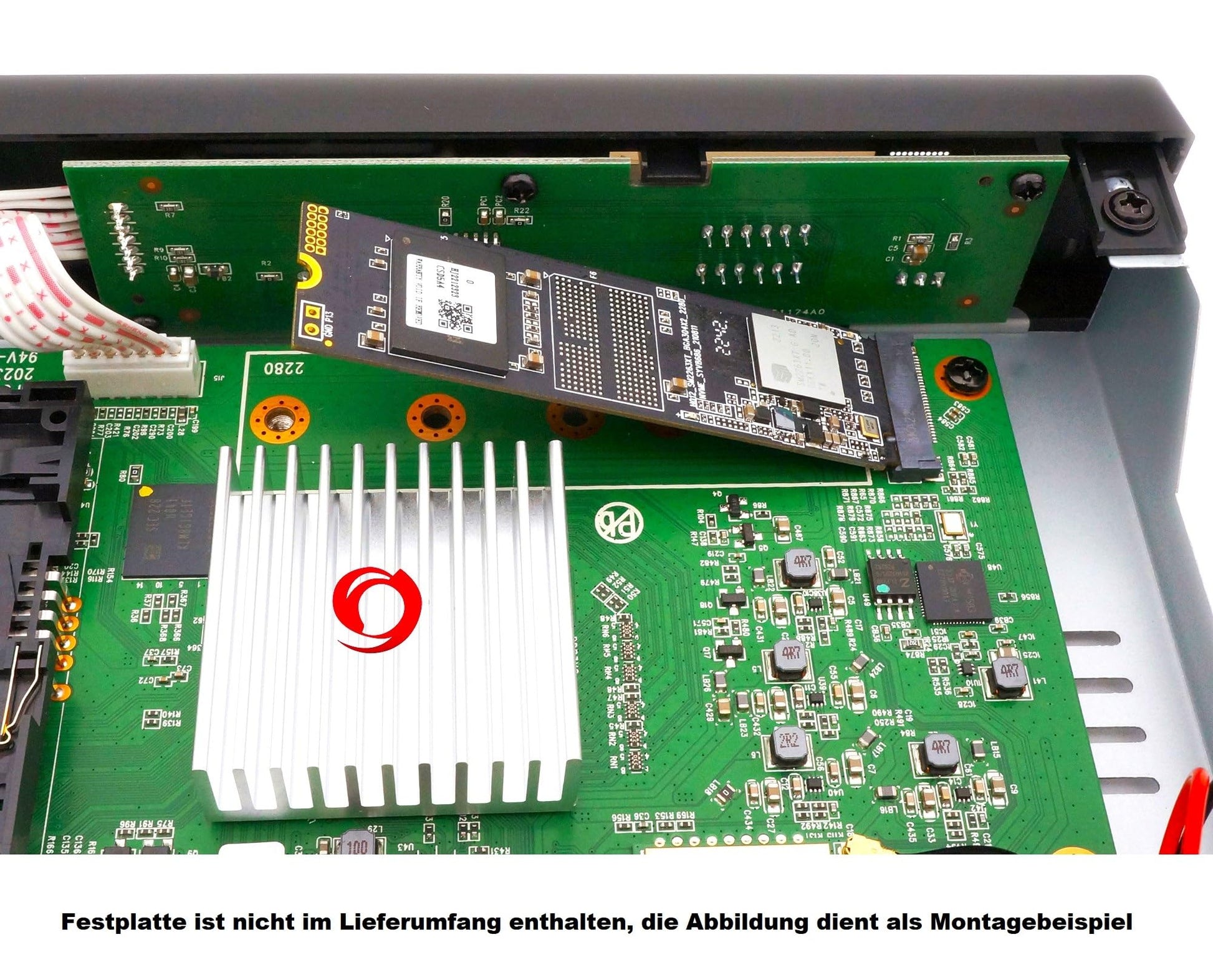 Die M.2-Schnittstelle ist eine innovative Besonderheit dieses Modells. Sie ermöglicht den Einbau einer M.2-SSD-Festplatte direkt im Gehäuse des Receivers. Dies sorgt für eine extrem schnelle, lautlose und platzsparende Speicherlösung für Ihre Aufnahmen, ohne dass ein externes Gerät benötigt wird.