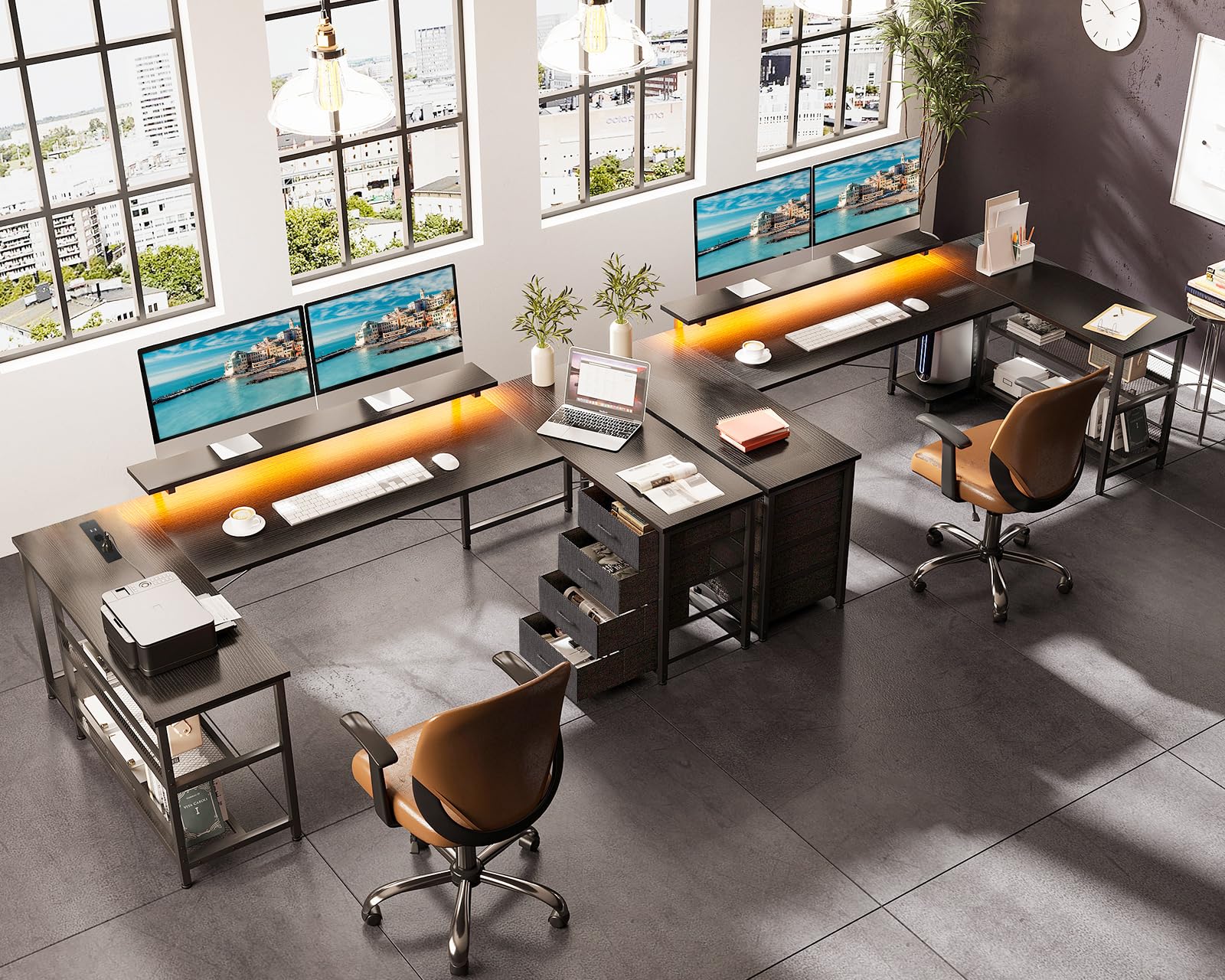 Dank der durchdachten U-Form haben Sie stets alles Wichtige – von Gaming-Zubehör bis zu Büro-Unterlagen – griffbereit. Dieses umhüllende Design schafft eine immersive Atmosphäre, die Sie voll und ganz in Ihre Arbeit oder Ihr Spiel eintauchen lässt. Gleichzeitig sorgen die zahlreichen Ablageflächen und Schubladen für einen aufgeräumten und organisierten Arbeitsplatz, auf dem nichts mehr im Weg liegt.