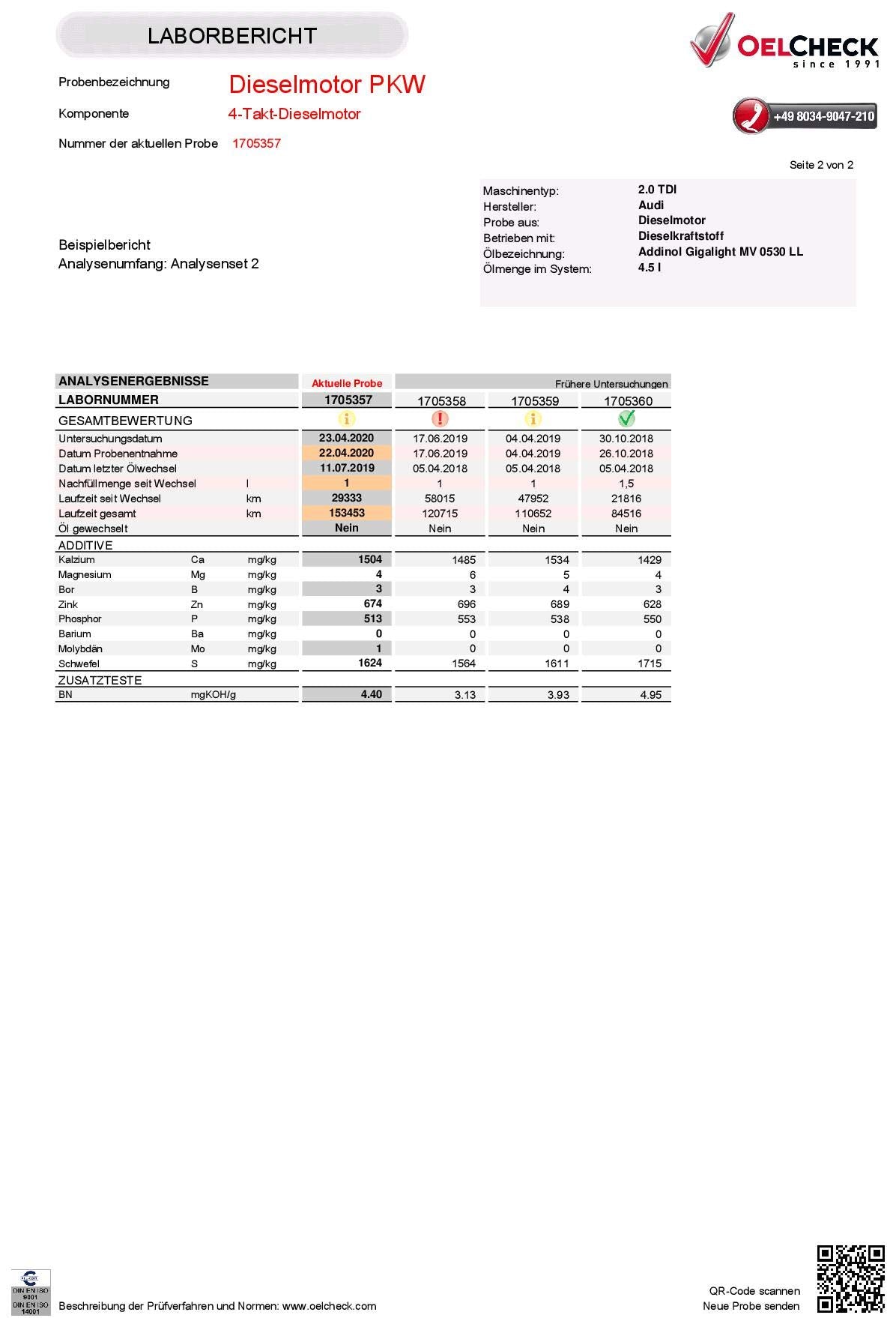 Dieses umfassende Analyse-Set ermöglicht eine professionelle Laboruntersuchung Ihres gebrauchten Motorenöls. Erhalten Sie detaillierte Einblicke in den Zustand Ihres Fahrzeugmotors und beugen Sie teuren Schäden gezielt vor.