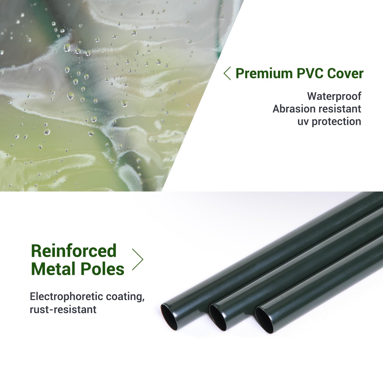 - Robuste Konstruktion: Gefertigt aus einem reissfesten, wasserdichten und UV-beständigen PVC-Netzgewebe (130g/m²). Ein stabiler Rahmen aus 16-mm-Stahlrohren mit PP-Kunststoffverbindern sorgt für Langlebigkeit.