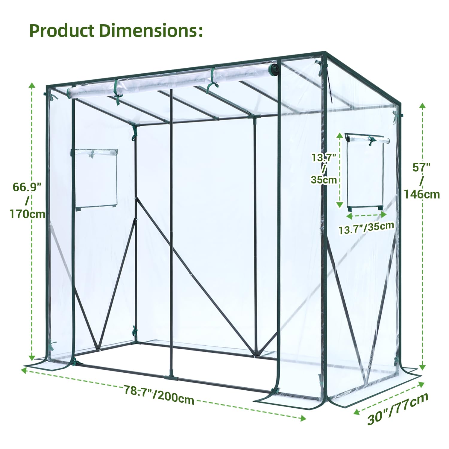 Mit den Massen 200 x 77 x 170 cm eignet es sich ideal für den Anbau von wärmeliebendem Gemüse wie Tomaten, Gurken, Paprika und Auberginen. Es ist auch perfekt für die Anzucht von Setzlingen, Kräutern, Blumen oder zum Überwintern frostempfindlicher Kübelpflanzen.