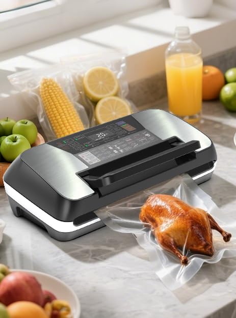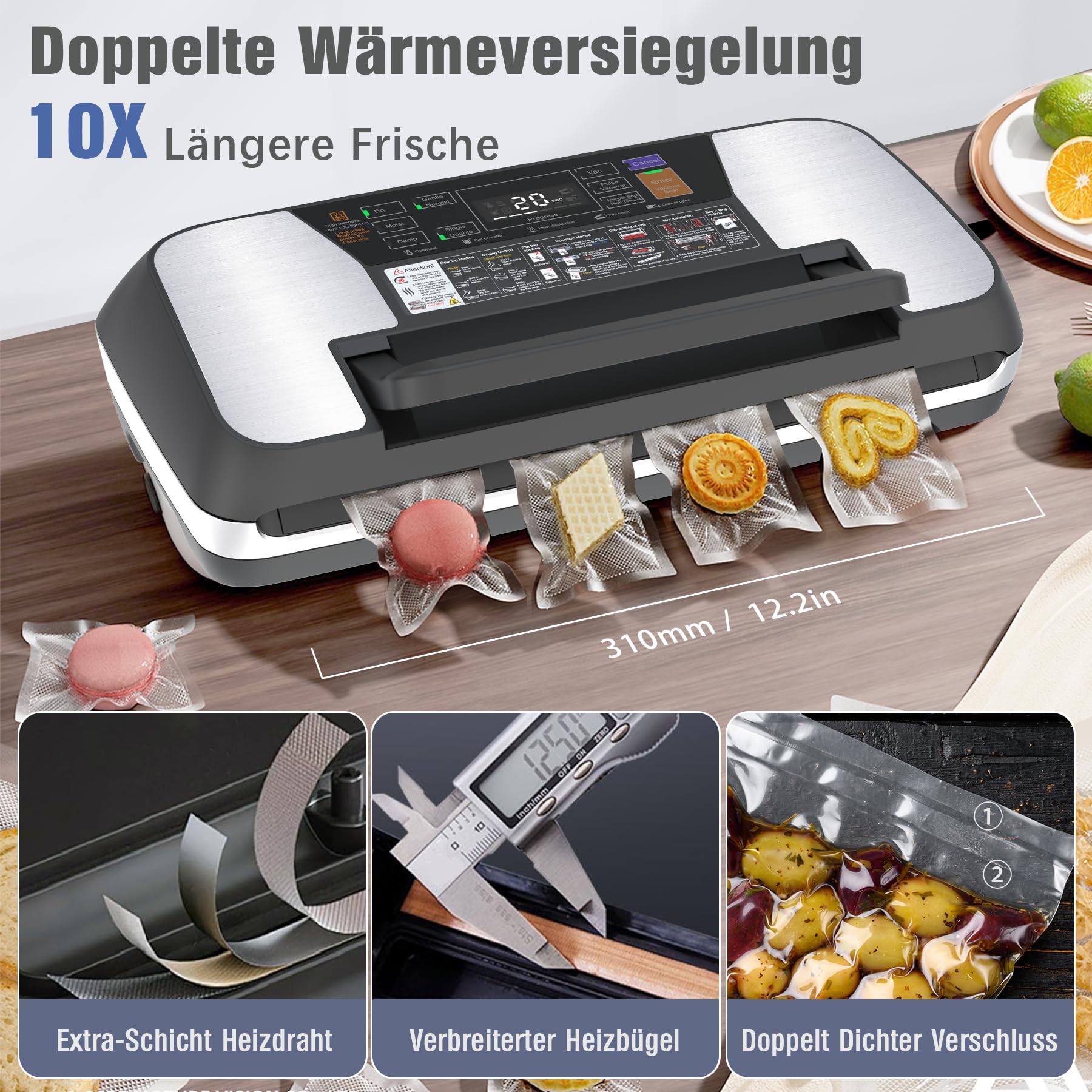 Dieses Vakuumiergerät ist Ihr vielseitiger Partner in der Küche, um Lebensmittel bis zu 10-mal länger frisch zu halten und Aromen zuverlässig zu konservieren.