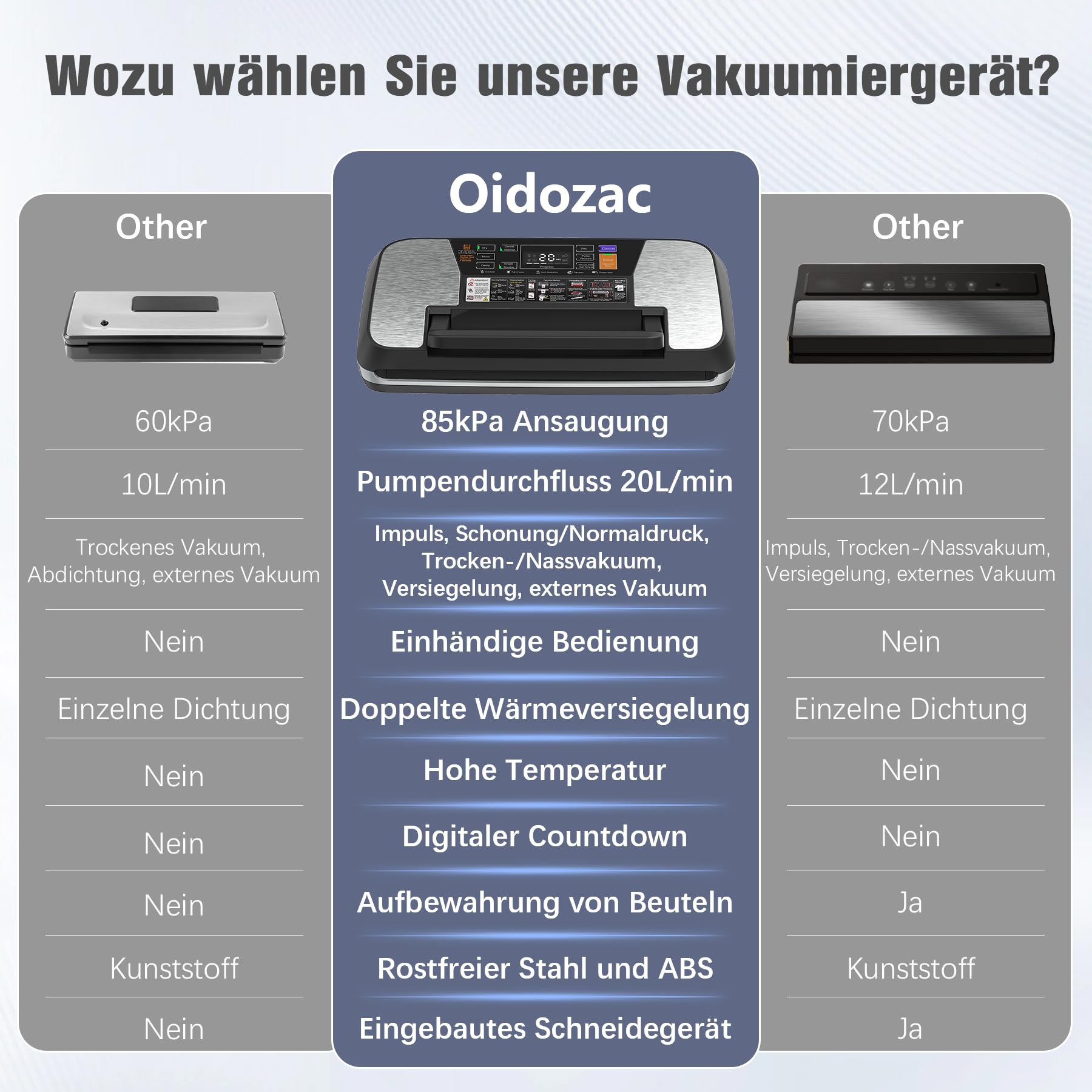 OidoZac Vakuumiergerät 85kPa - Doppelte Schweissnaht Easy-Lock