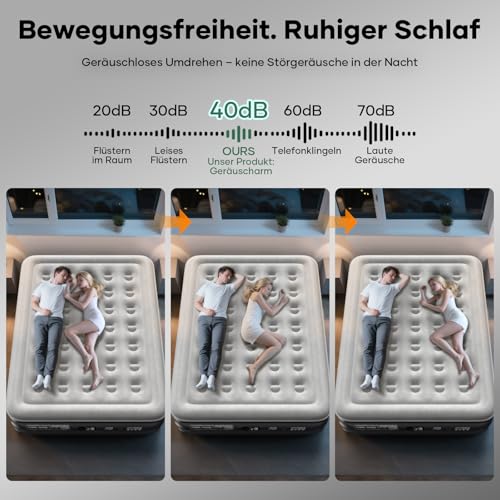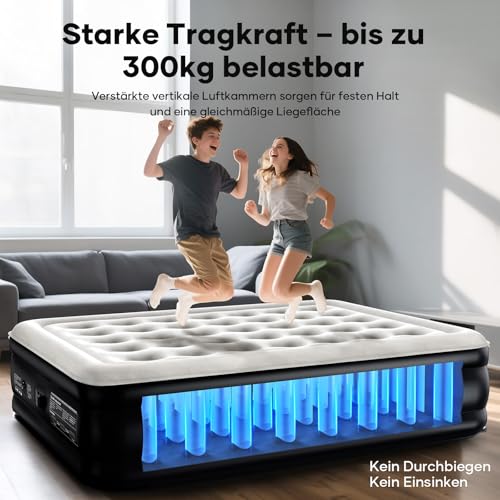 - Schnelles Aufblasen: Die integrierte elektrische Pumpe füllt das Luftbett in nur 3 bis 4 Minuten vollständig auf.