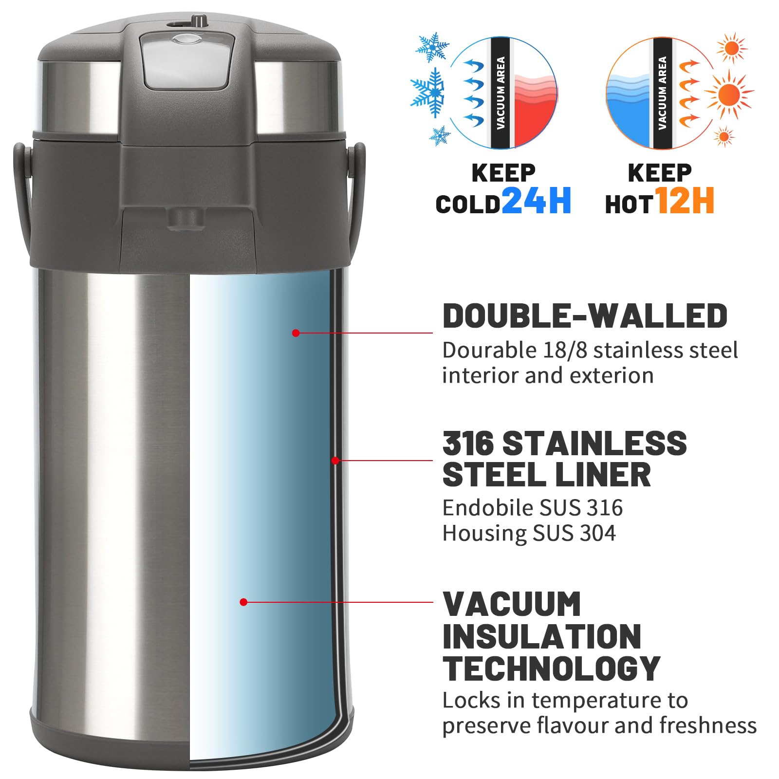 Olerd Pump-Thermoskanne Kaffeespender 4,0L - Silber Edelstahl