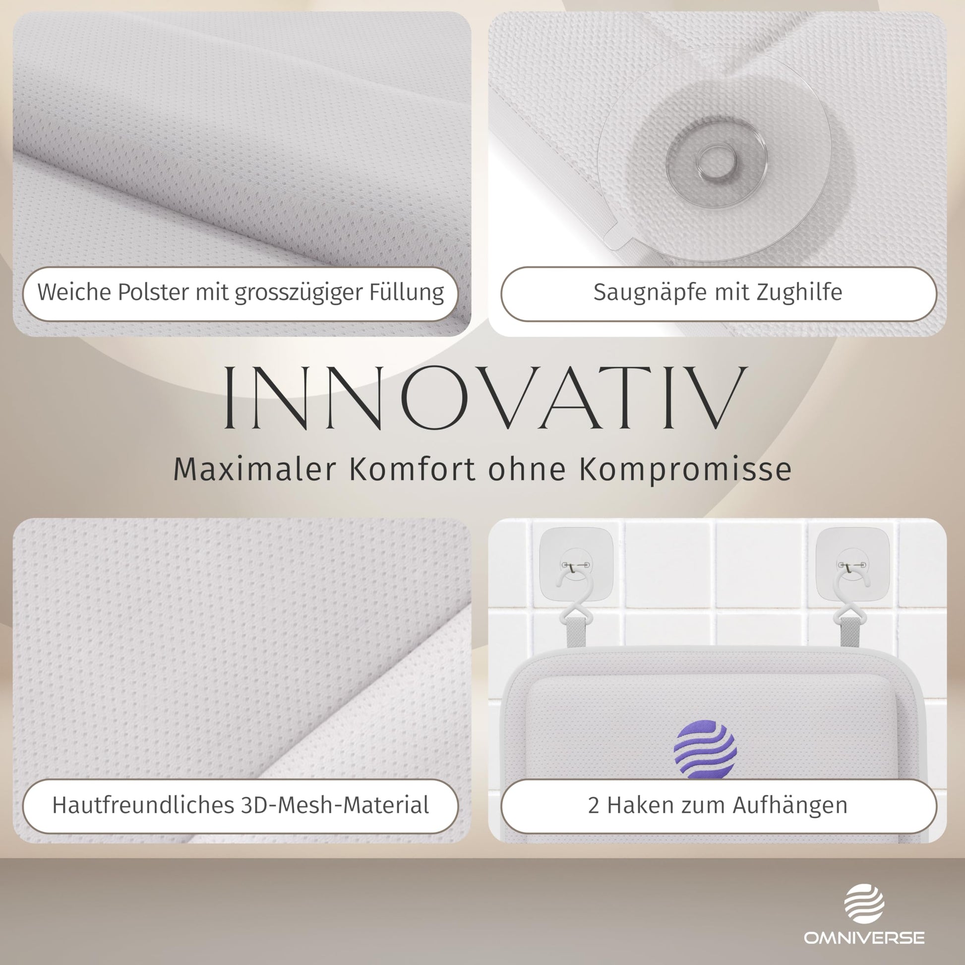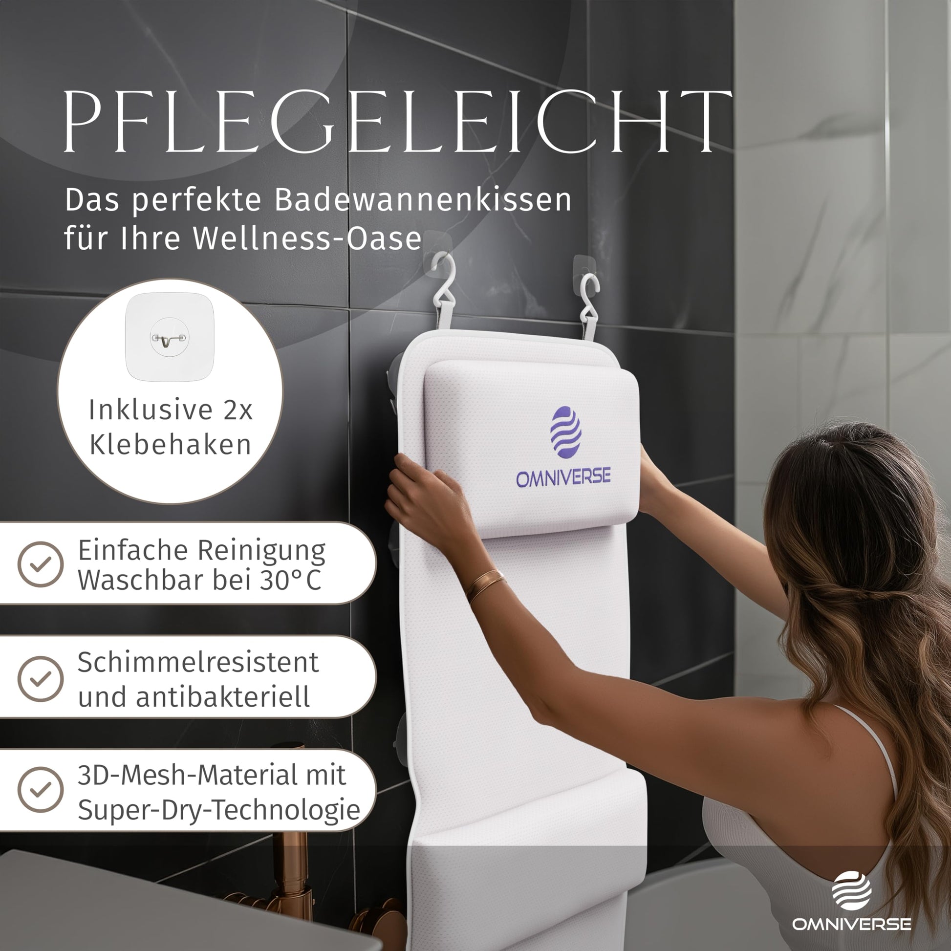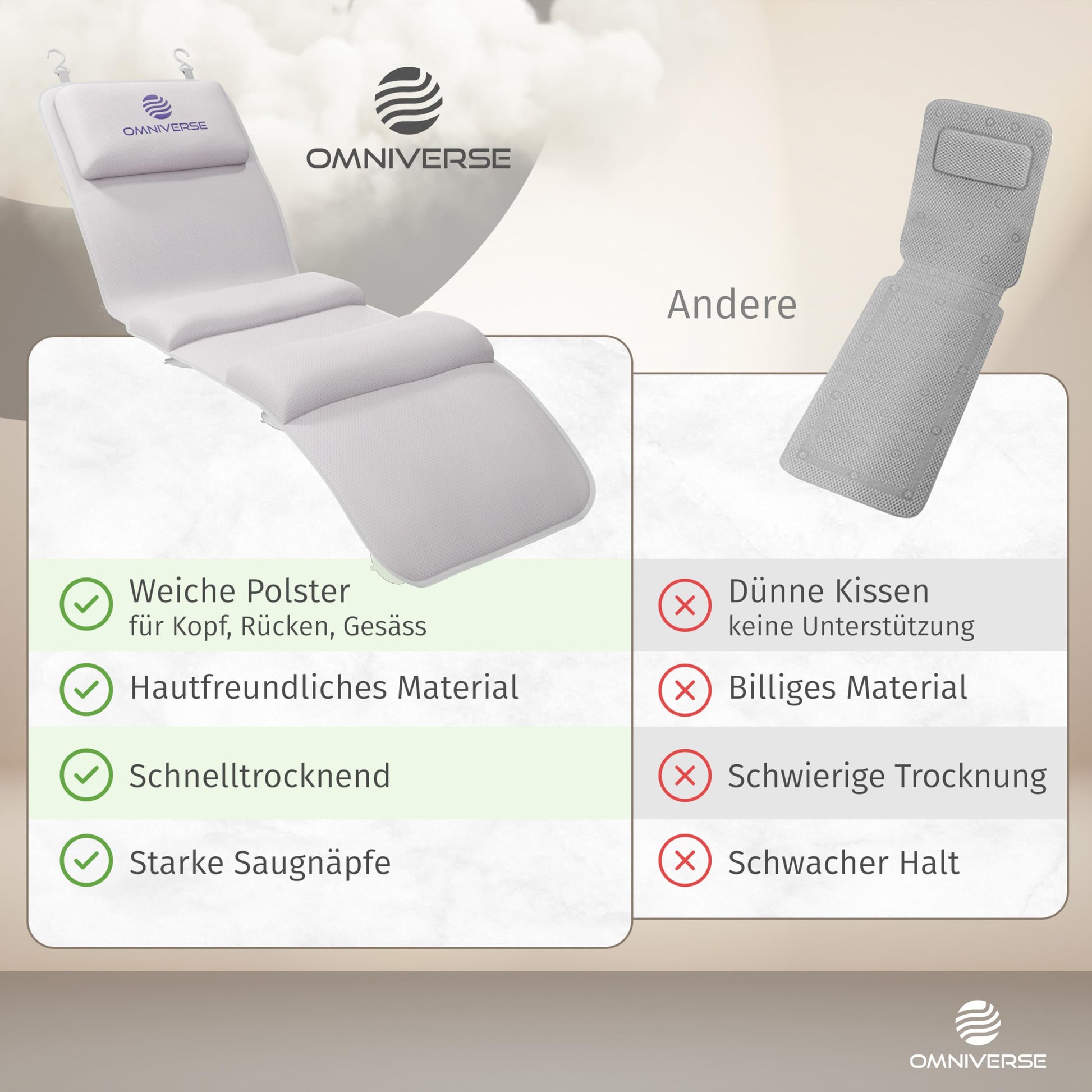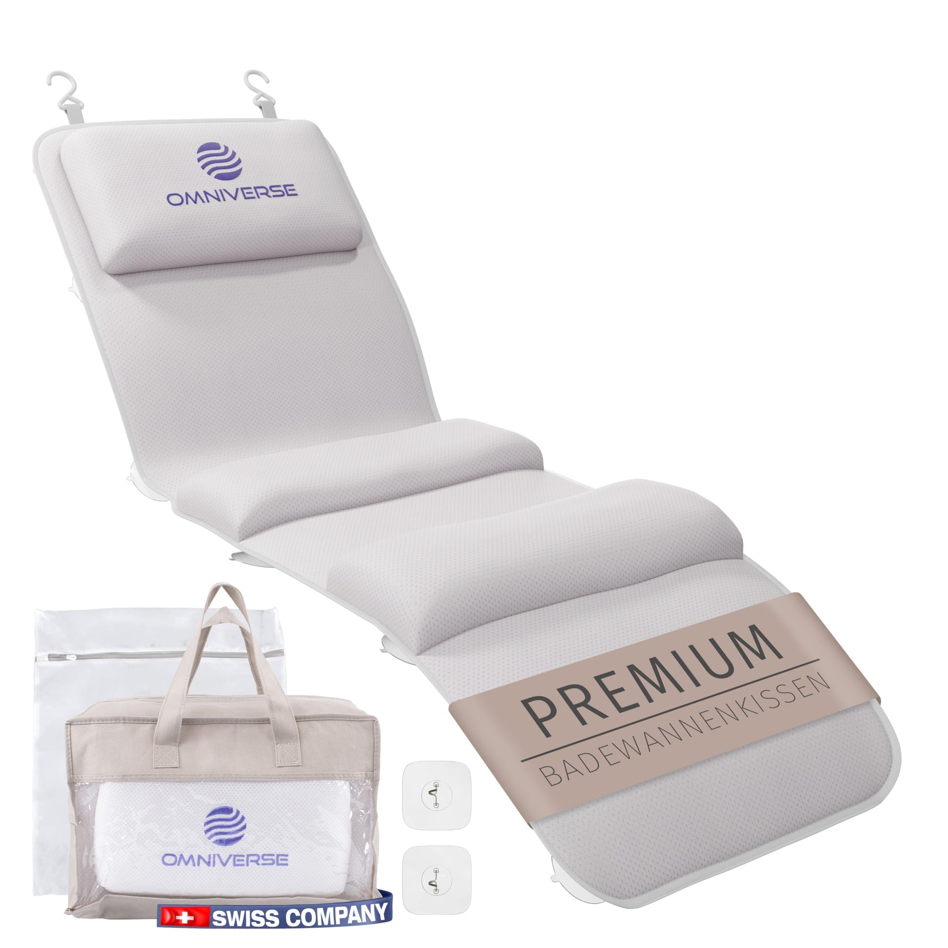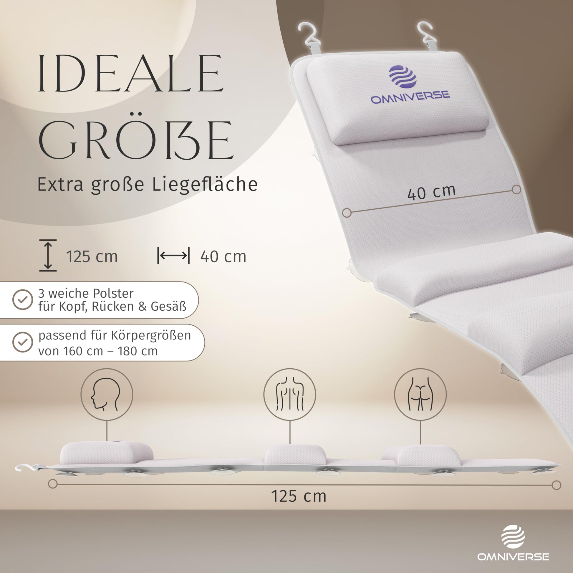 Omniverse Badewannenkissen Ganzkörper Badewannenmatte 125x40cm – Weiss