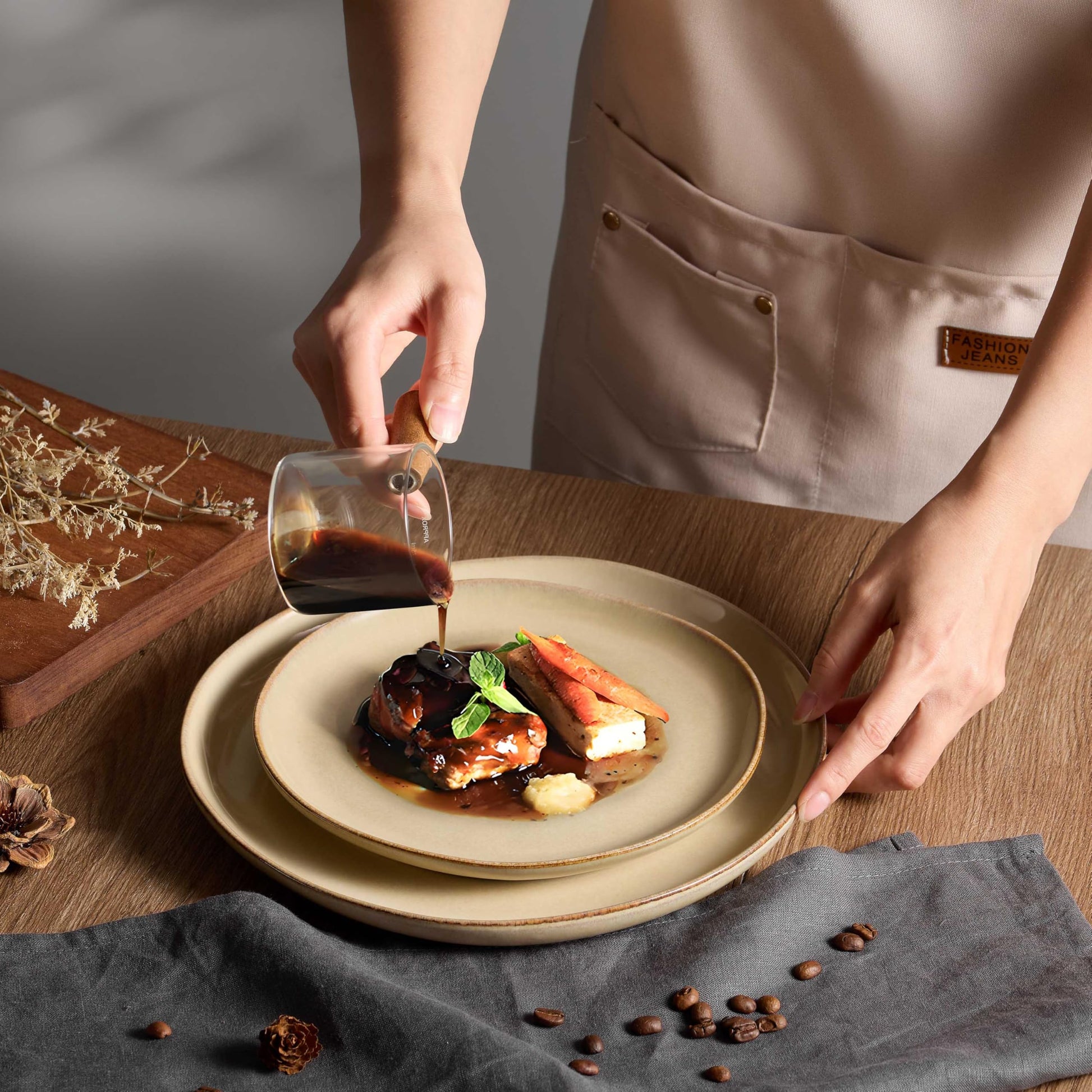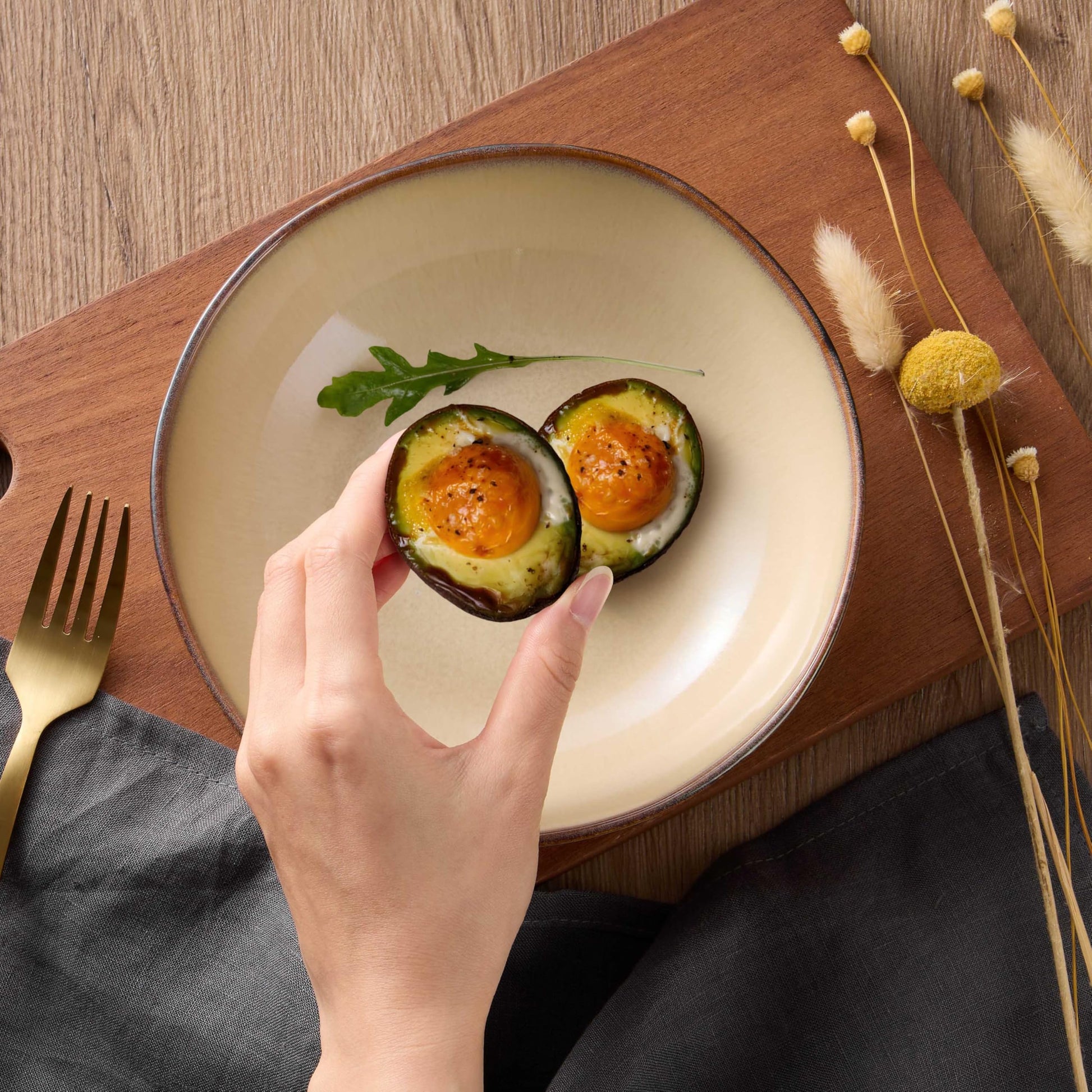 - Einzigartiges Design: Jedes Teil ist dank einer reaktiven Doppelglasur ein Unikat mit individuellen sandfarbenen Khaki-Schattierungen. Die unregelmässige, organische Form hebt sich von herkömmlichen runden Tellern ab und verleiht dem Service einen unverwechselbaren Charakter.