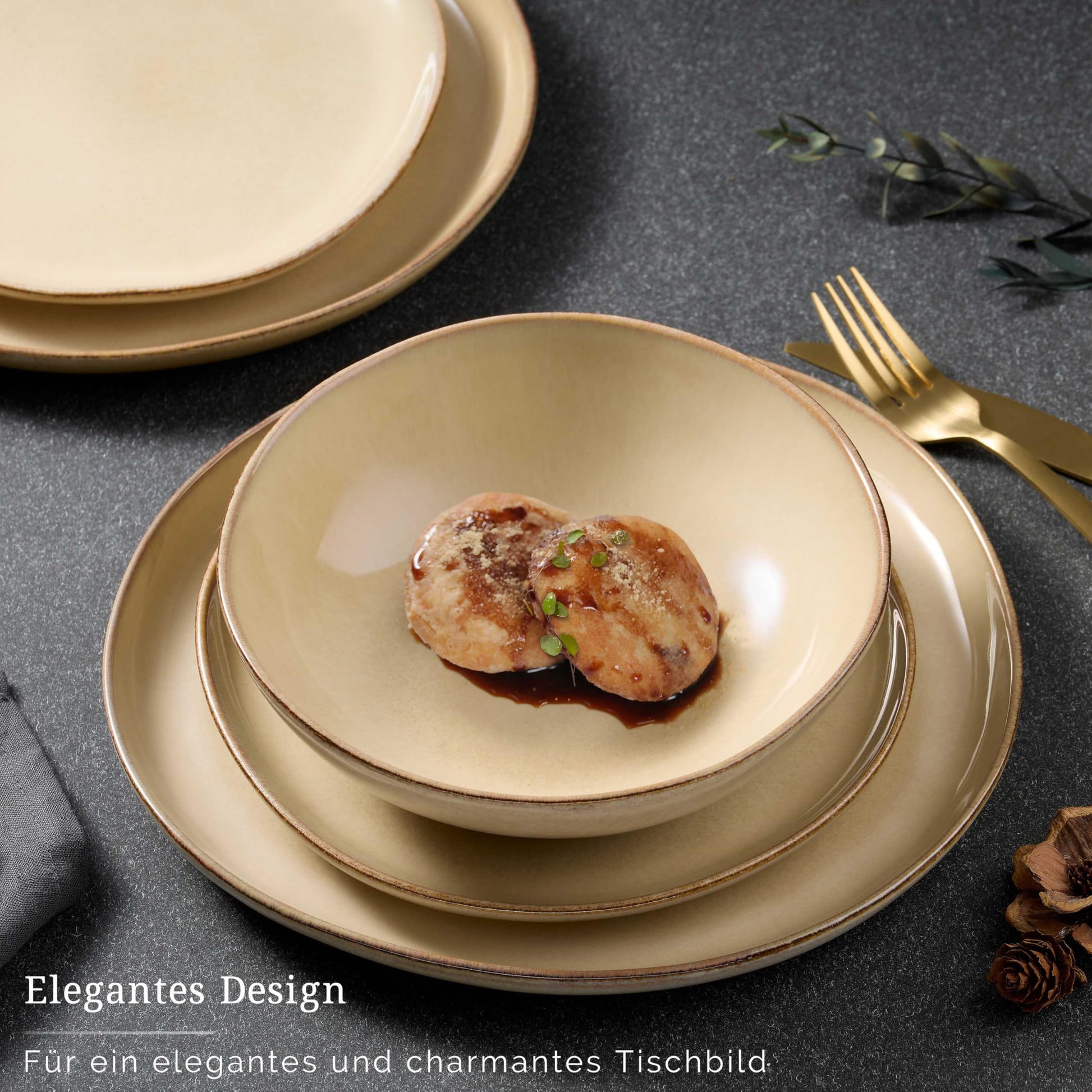 Onader 18tlg. Tafelservice Steingut Geschirrset – Khaki 6 Pers.
