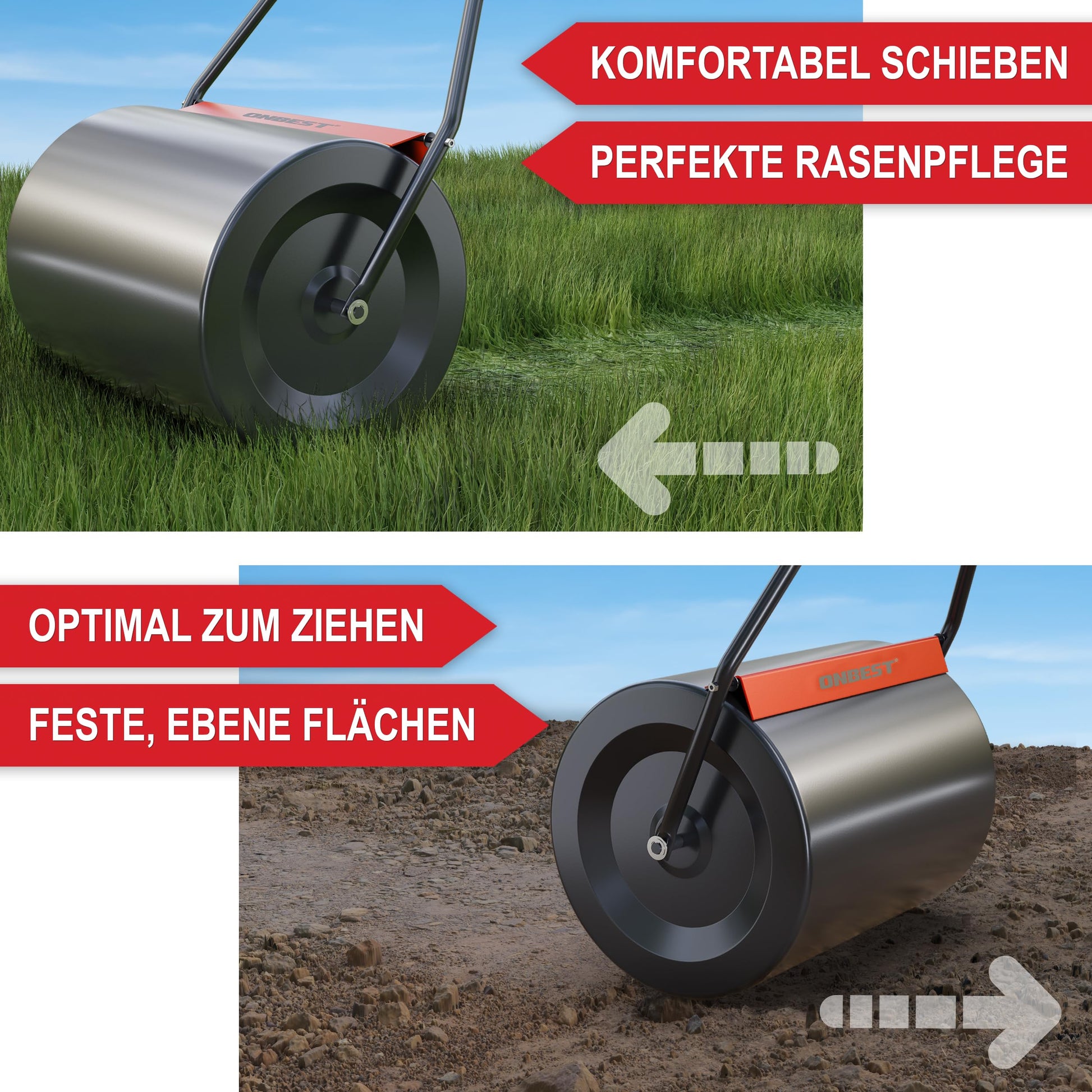 ONBEST Profi Rasenwalze aus Stahl, 60 Liter, befüllbar