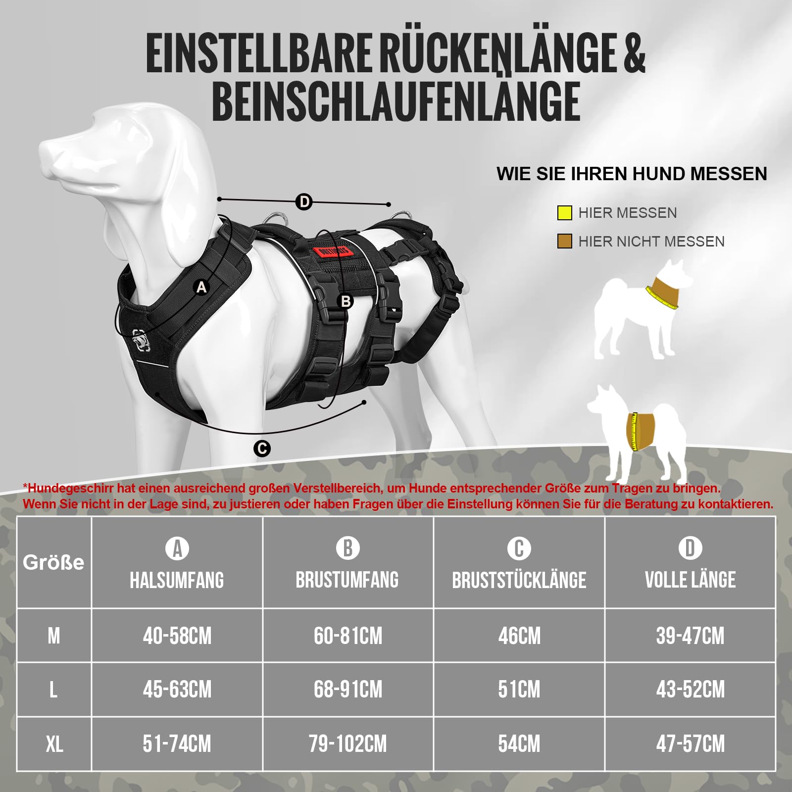 - Hochwertige Materialien: Gefertigt aus strapazierfähigem 1000D-Nylon, ist das Geschirr äusserst robust und resistent gegen Schmutz, Wasser und Abrieb. Langlebige UTX-Duraflex-Schnallen und D-Ringe aus rostfreiem Stahl garantieren eine lange Lebensdauer.