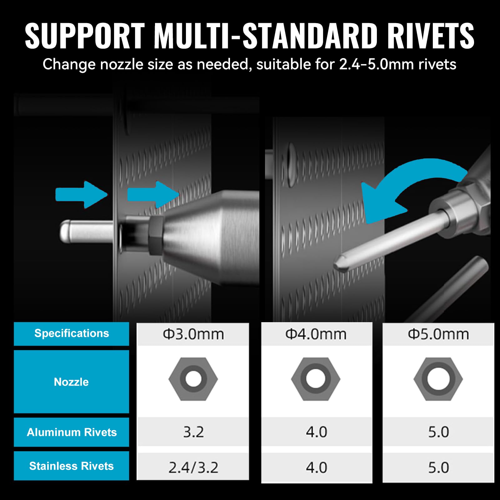 - Verarbeitbare Nietdurchmesser: 2,4 mm - 5,0 mm