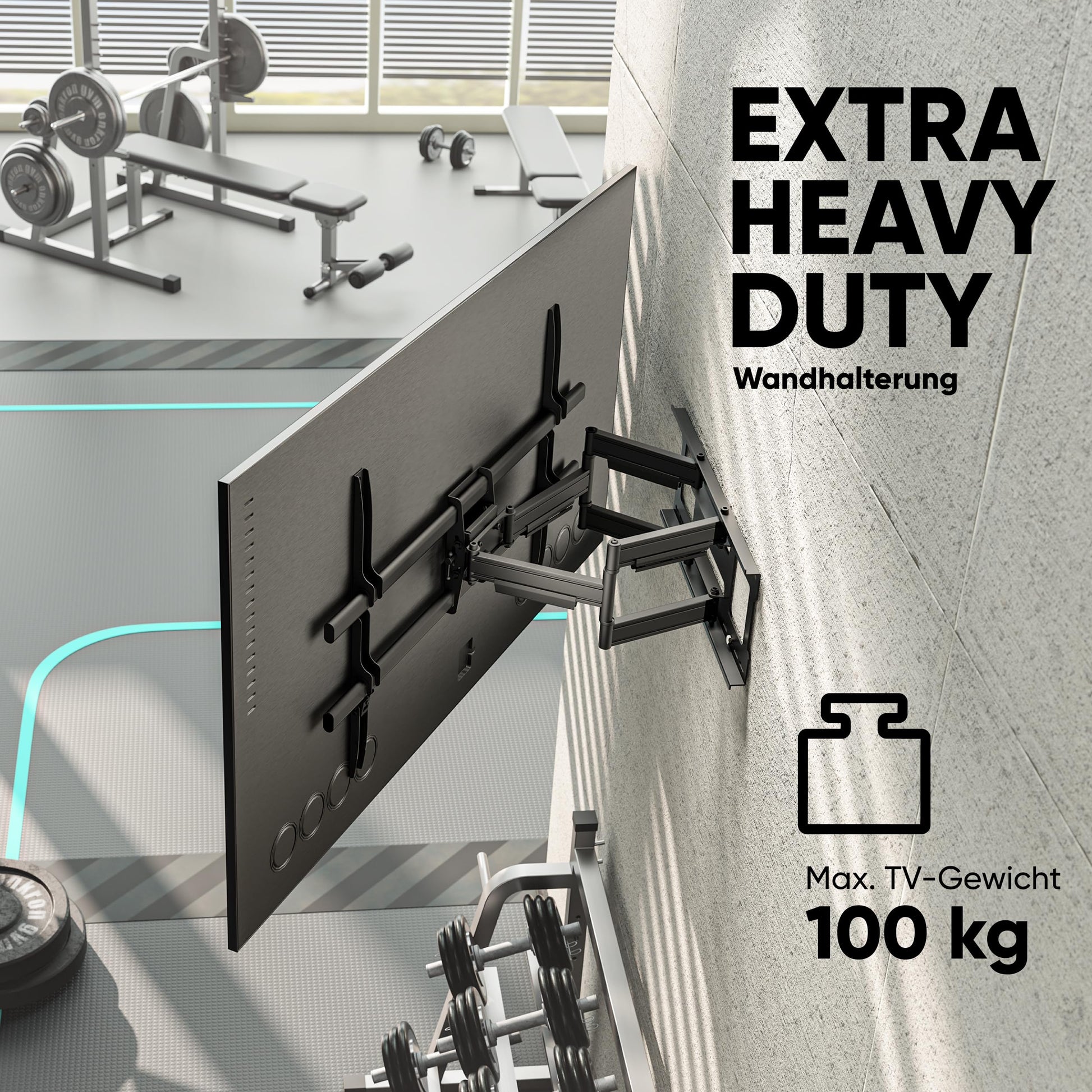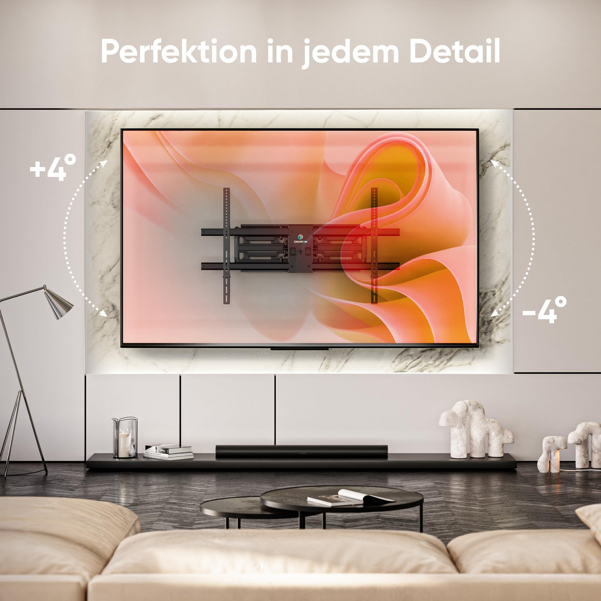 Die ONKRON M10-B ist eine äusserst robuste und flexible TV-Wandhalterung, die speziell für grosse und schwere Bildschirme konzipiert wurde. Sie kombiniert eine beeindruckende Tragkraft mit einem eleganten, platzsparenden Design für ein optimales Seherlebnis in jedem Raum.