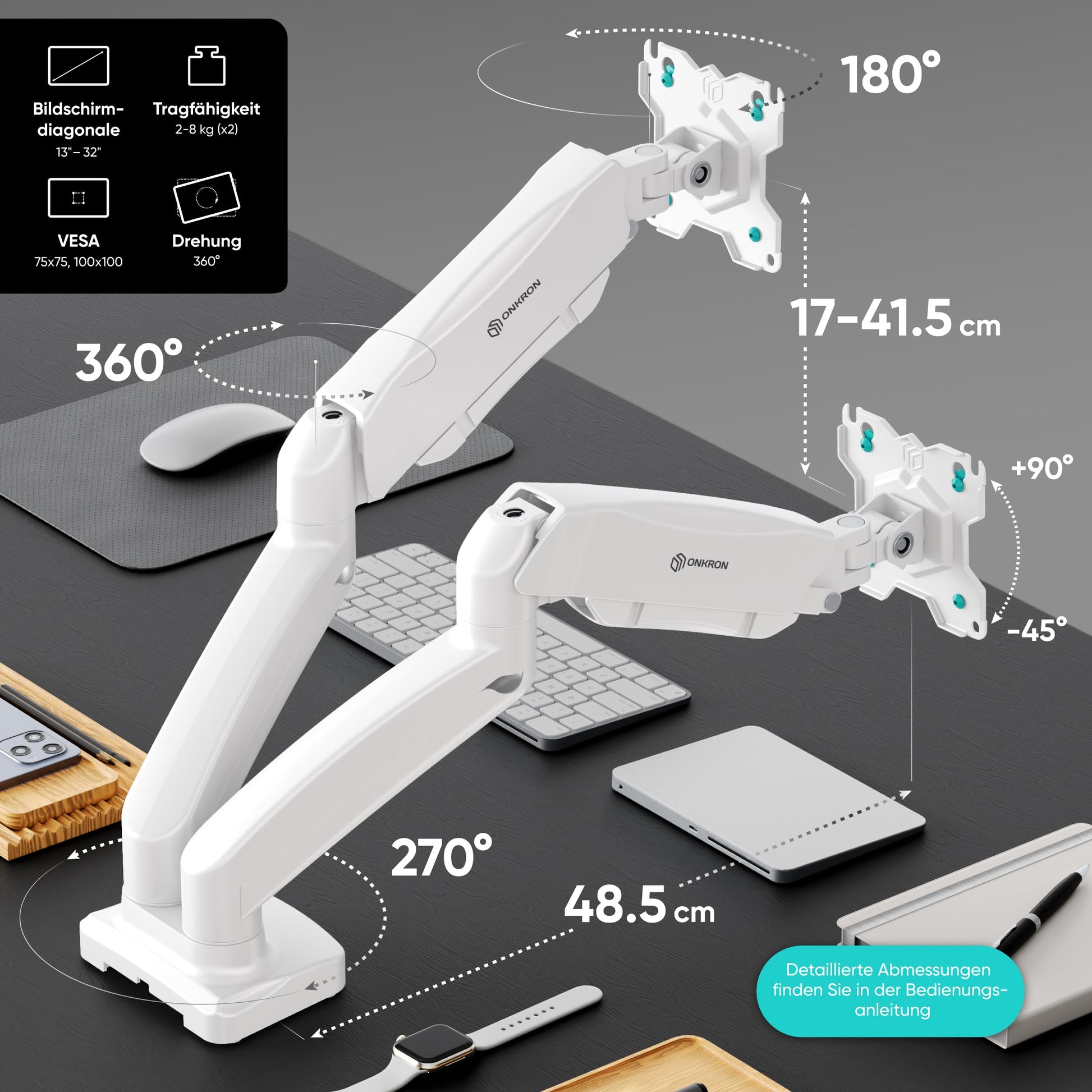 ONKRON G160 Dual Monitor Halterung Gasdruckfeder - Weiss