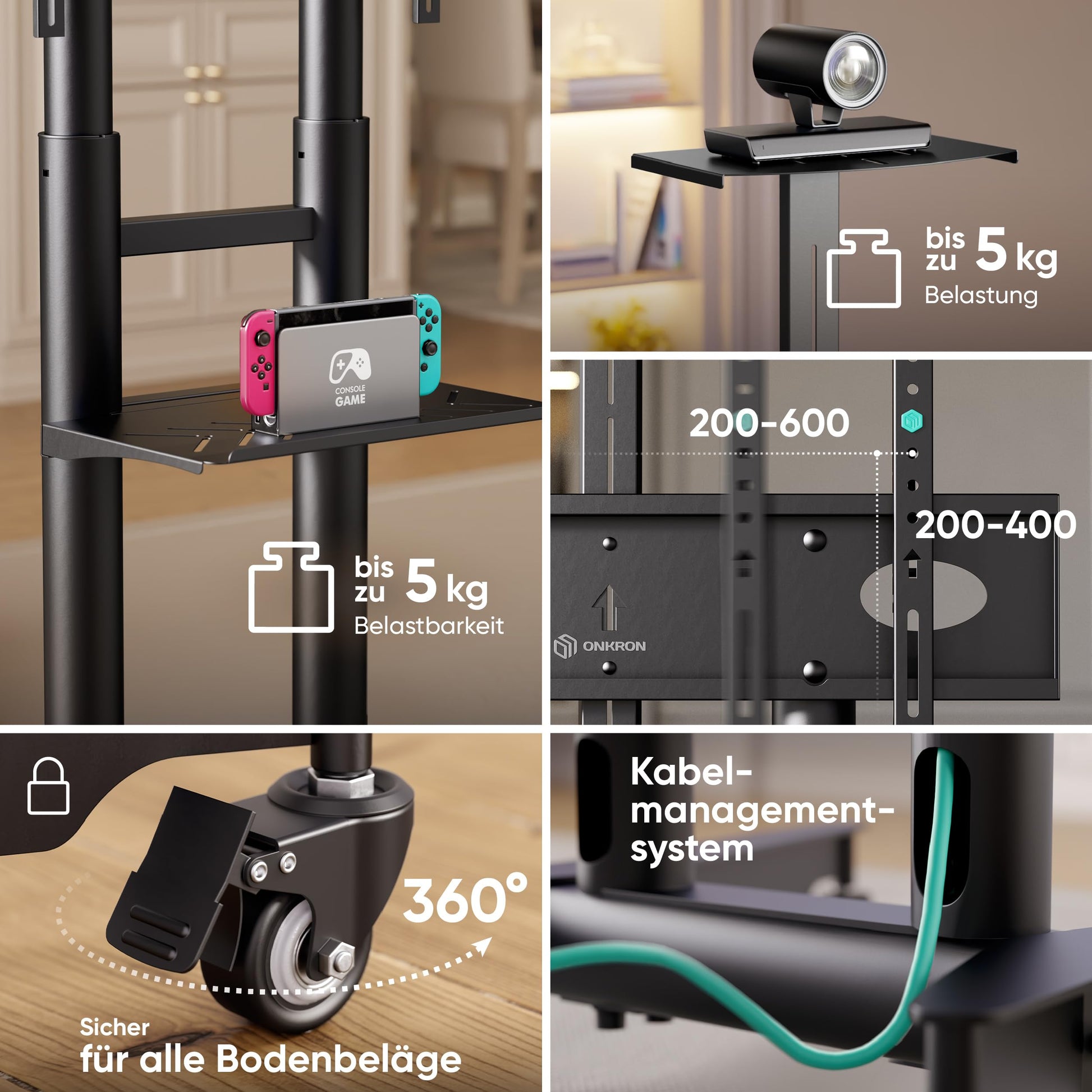 Der ONKRON TS1571-B ist somit die clevere Wahl für alle, die eine stabile, mobile und aufgeräumte Präsentations- und Entertainment-Lösung suchen.