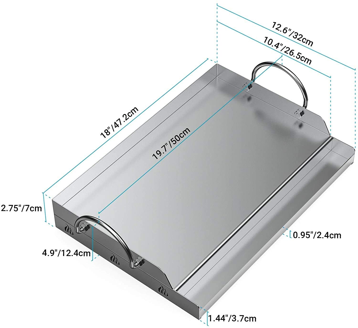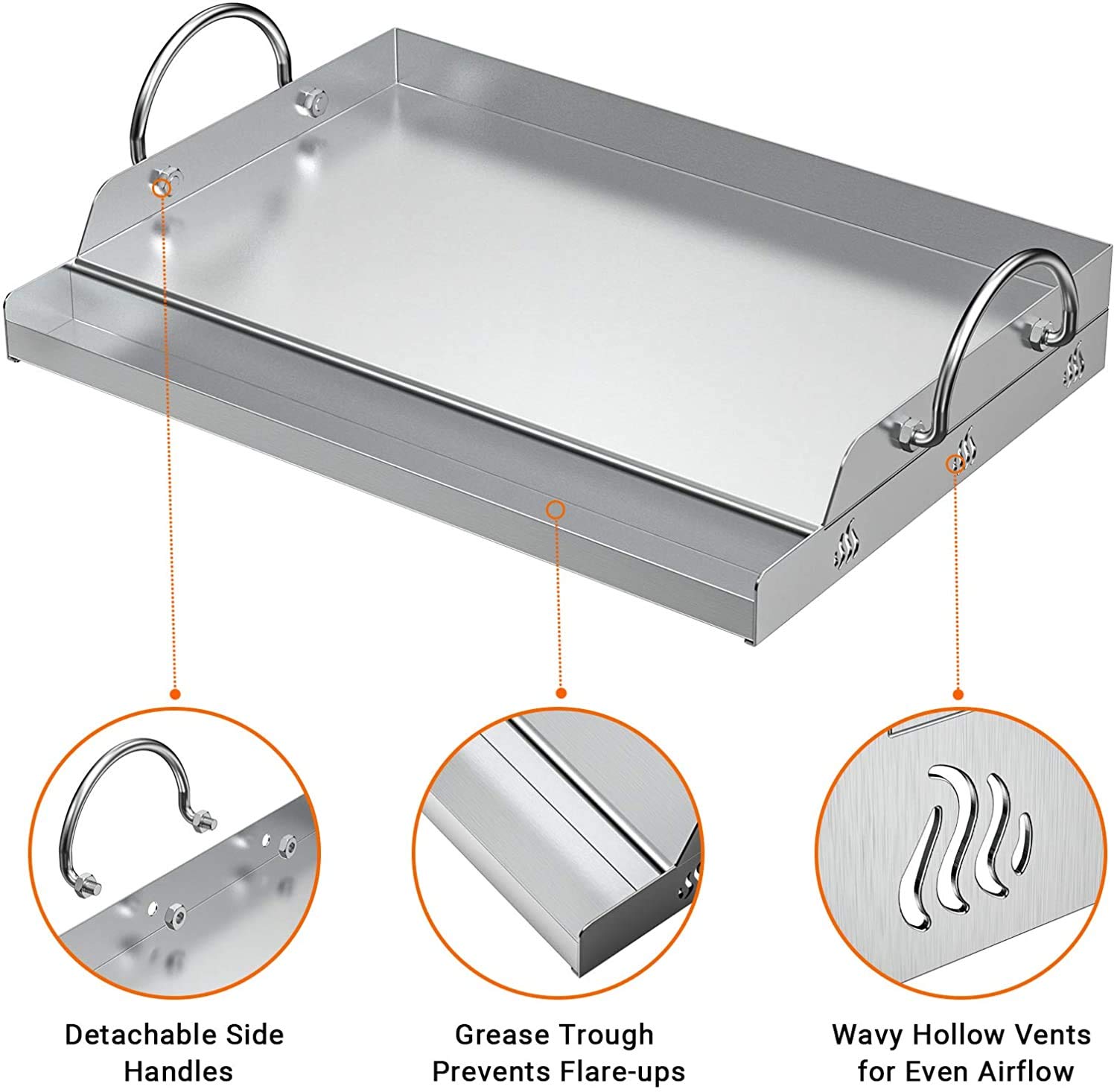 - Robustes Material: Die Platte besteht aus 1,2 mm starkem, langlebigem Edelstahl, der eine optimale Hitzeverteilung und -speicherung gewährleistet.