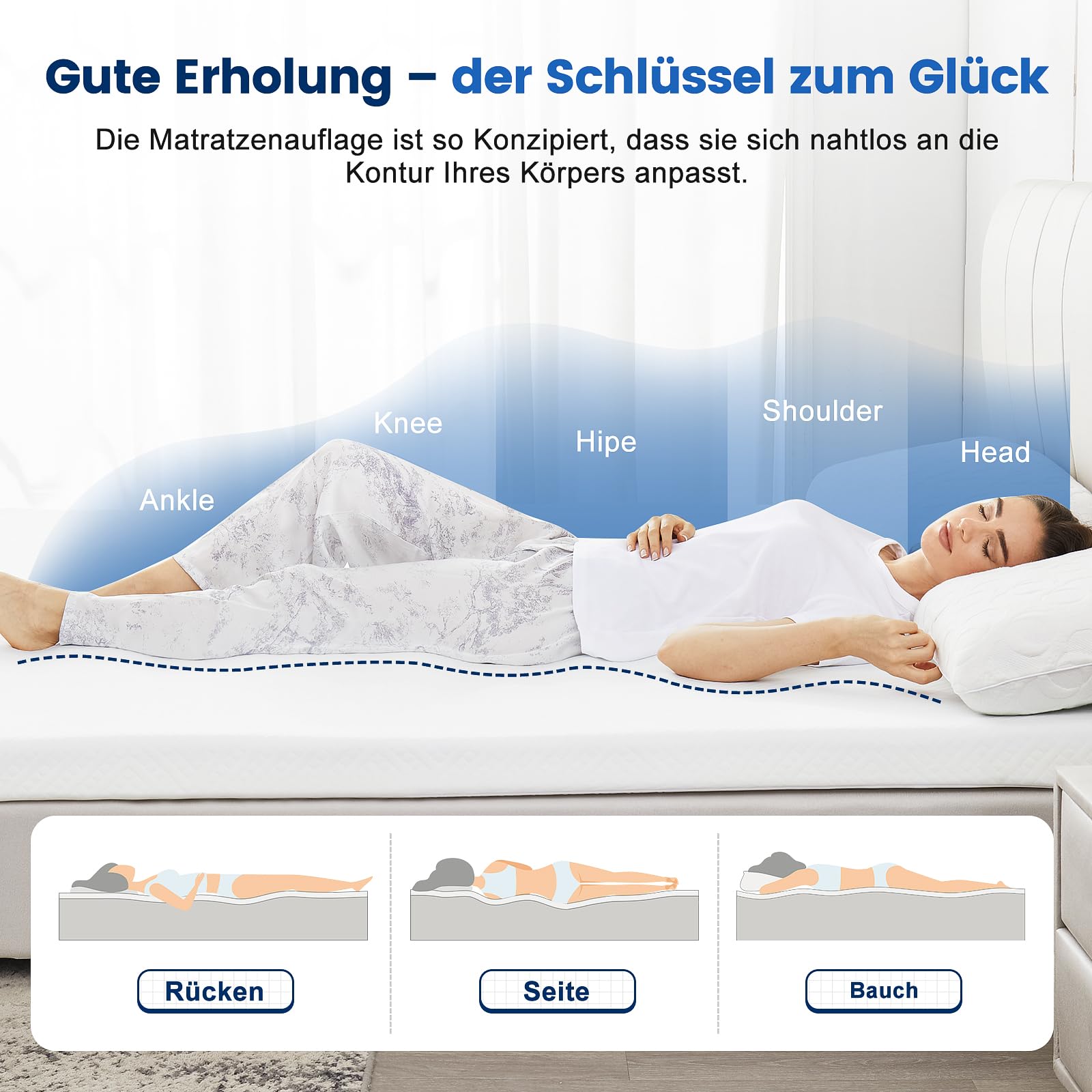 - Stabiler Halt: Eine rutschfeste Unterseite verhindert, dass der Topper auf der Matratze verrutscht.