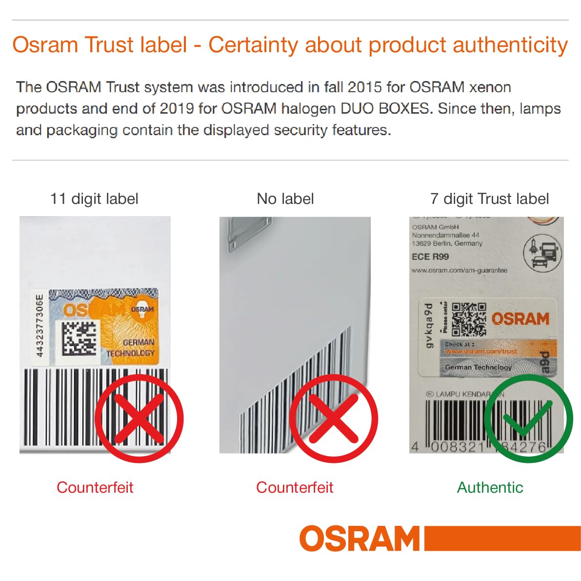 - Garantierte Echtheit: Jede Verpackung verfügt über einen einzigartigen Code zur Online-Verifizierung über das OSRAM Trust Program, um Sie vor Produktfälschungen zu schützen.