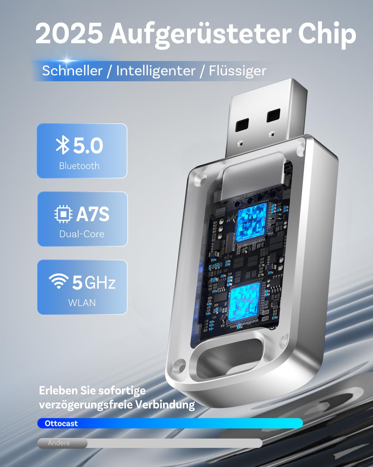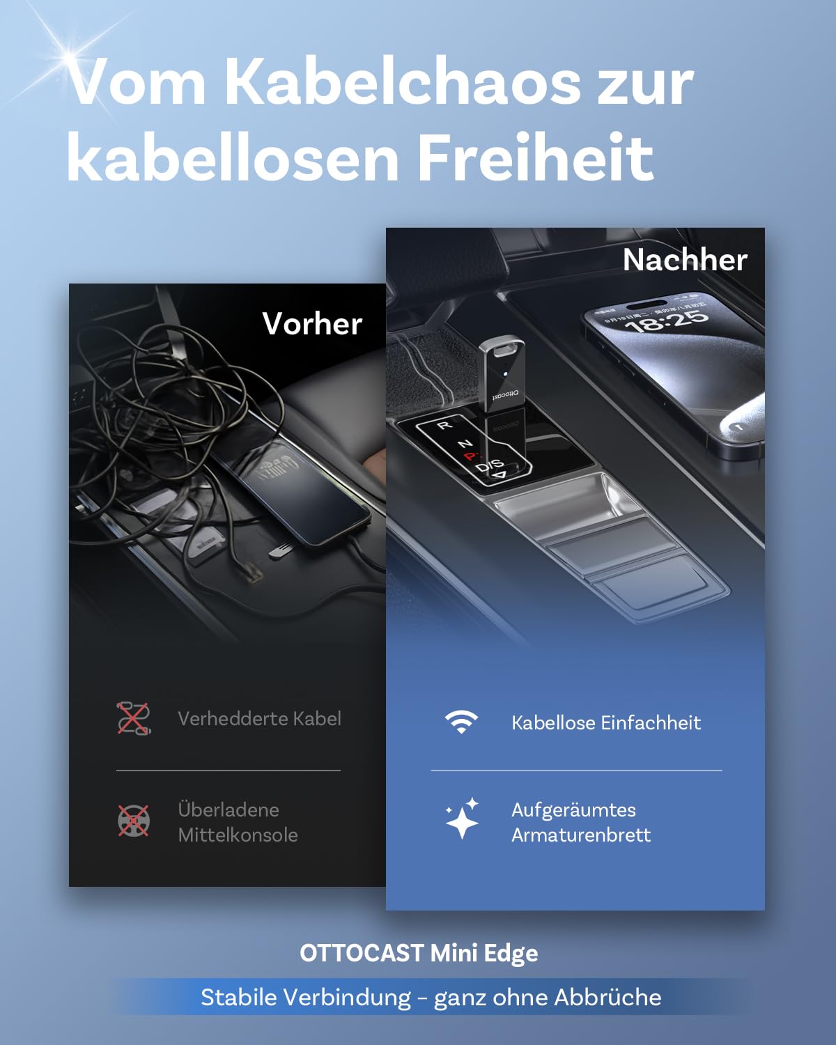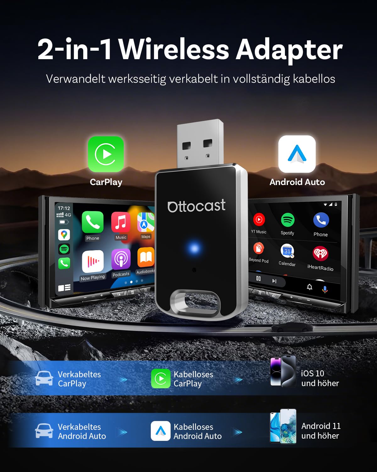 OTTOCAST Mini Edge 2025 Upgraded – 2-in-1 Kabelloser CarPlay & AA Adapter