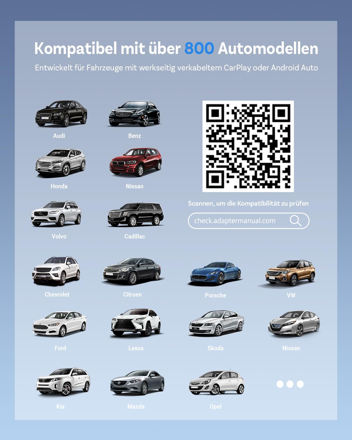 Ja, absolut. Der Adapter ist eine 2-in-1-Lösung, die sowohl kabelloses CarPlay (ab iOS 10) als auch kabelloses Android Auto (ab Android 11) unterstützt. Er kann sogar die Daten mehrerer Smartphones speichern, sodass Familienmitglieder mit unterschiedlichen Handys einfach zwischen den Geräten wechseln können.