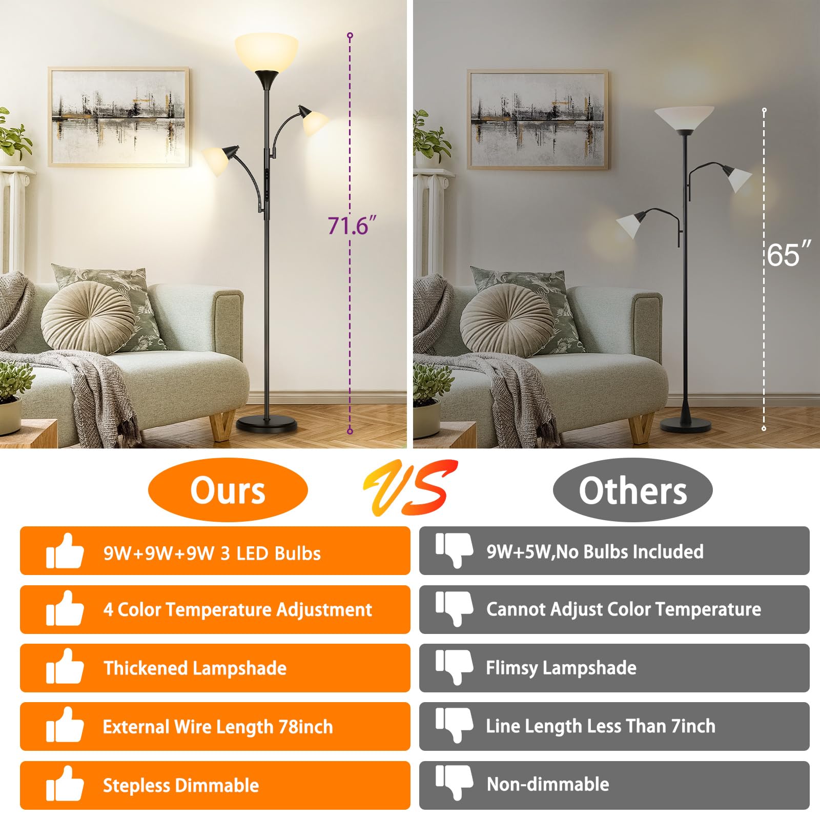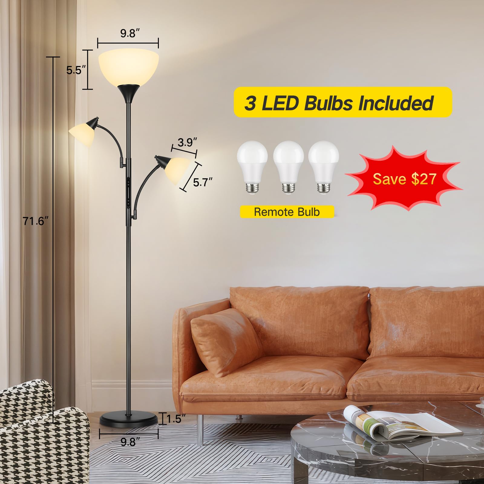 OUTON Stehlampe Deckenfluter mit 3 Leselampen LED Dimmbar